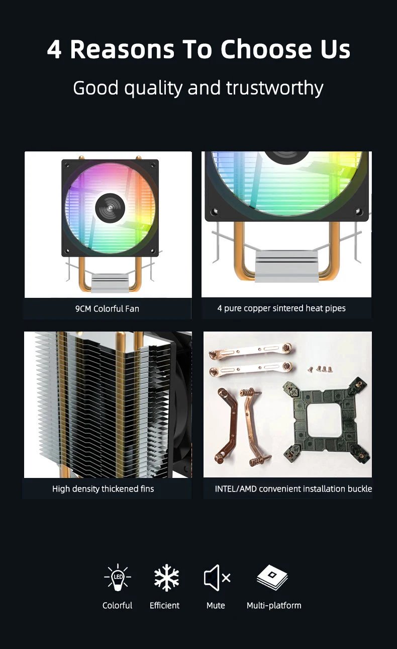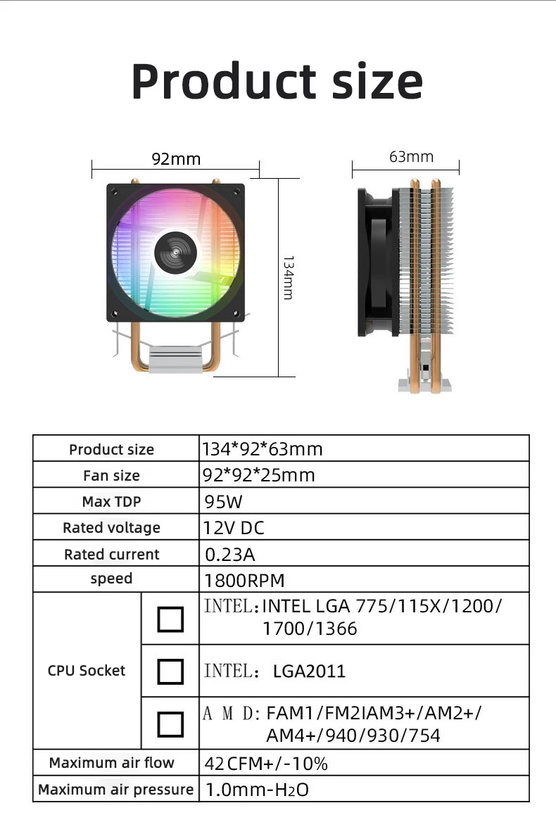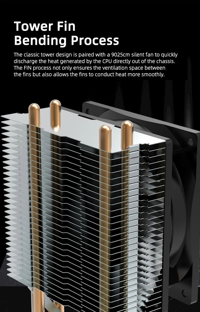Comprar TEUCER-enfriador de CPU con 2/4 tubos de calor, ventilador silencioso RGB de bajo ruido para Intel 1700/1150/1200 y AMD AM2/AM3/AM4