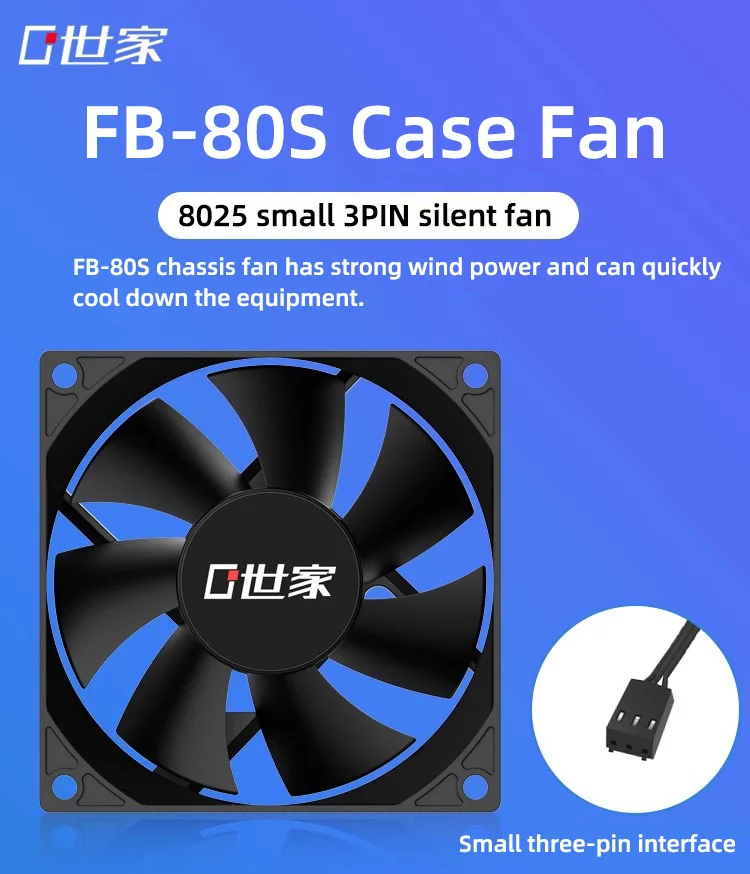 Teucer FB-80S Ventilador silencioso con cubierta de PC de 8CM, 12V, pequeños rodamientos hidráulicos de 3 pines, 2200rpm para ordenador, Ventilador de refrigeración de radiador Chassic