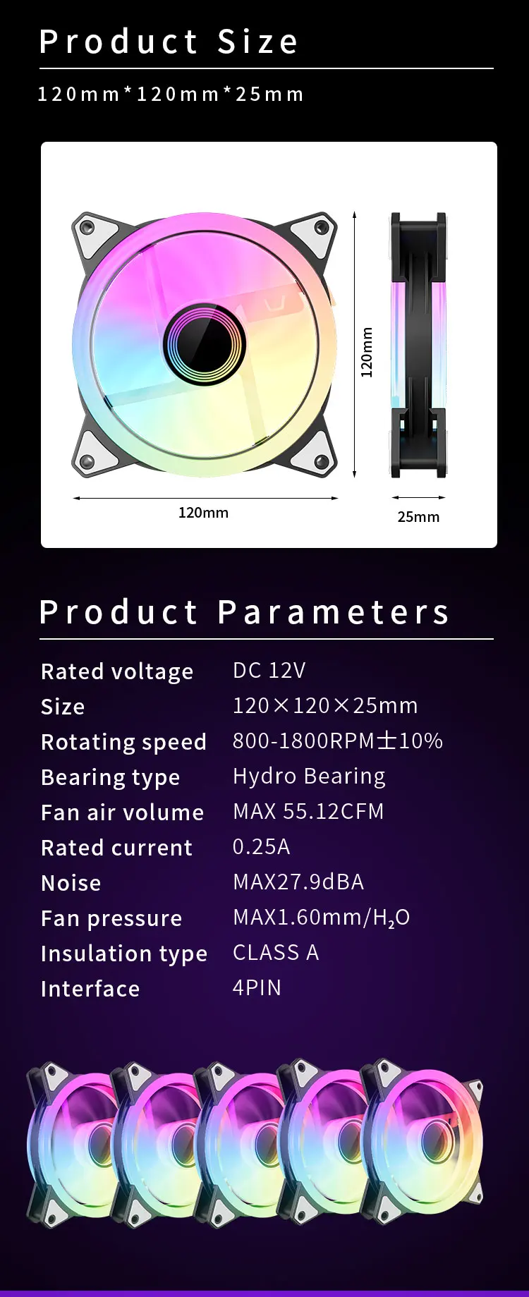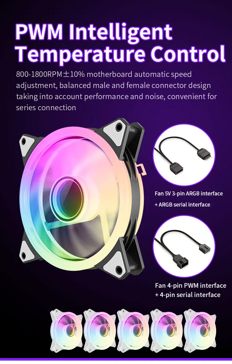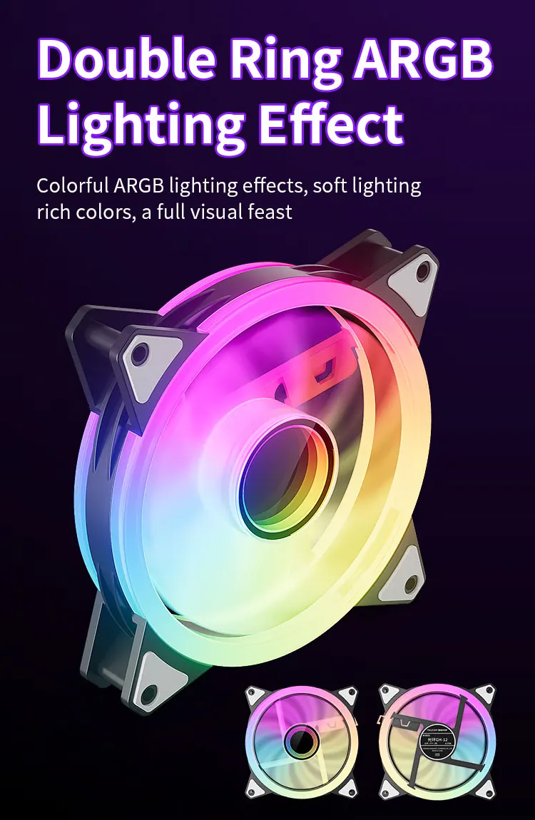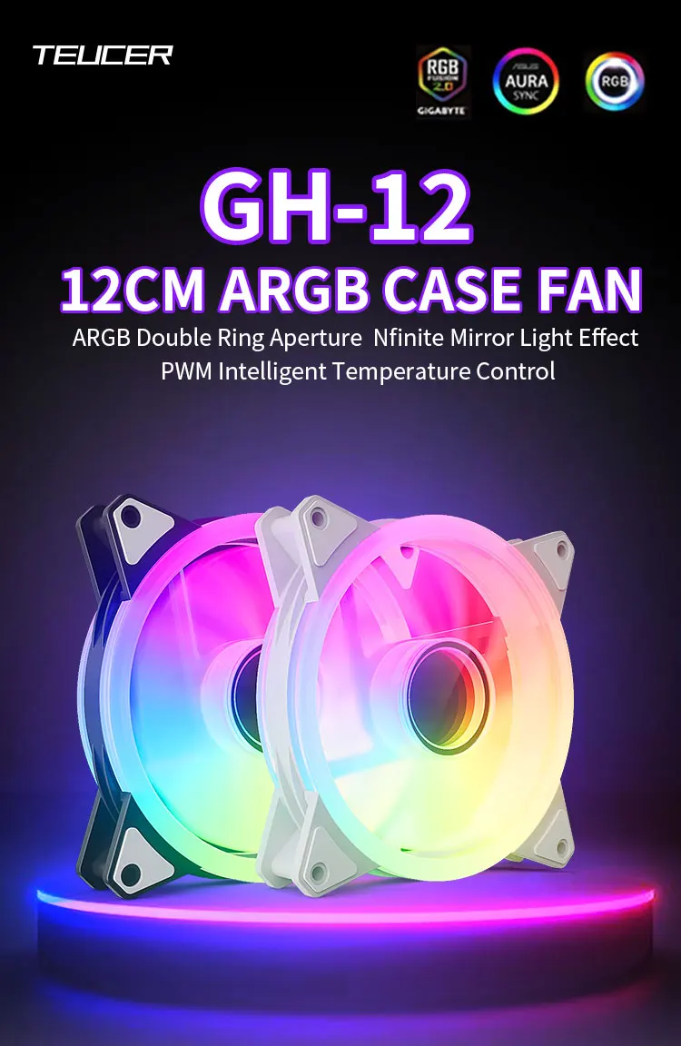 Comprar Teucer GH-12 Ventilador con cubierta de ordenador de 120mm, 12V/4 pines, PWM, 5V/3 pines, doble anillo, ARGB, espacio ilimitado, Ventilador de refrigeración de chasis silencioso