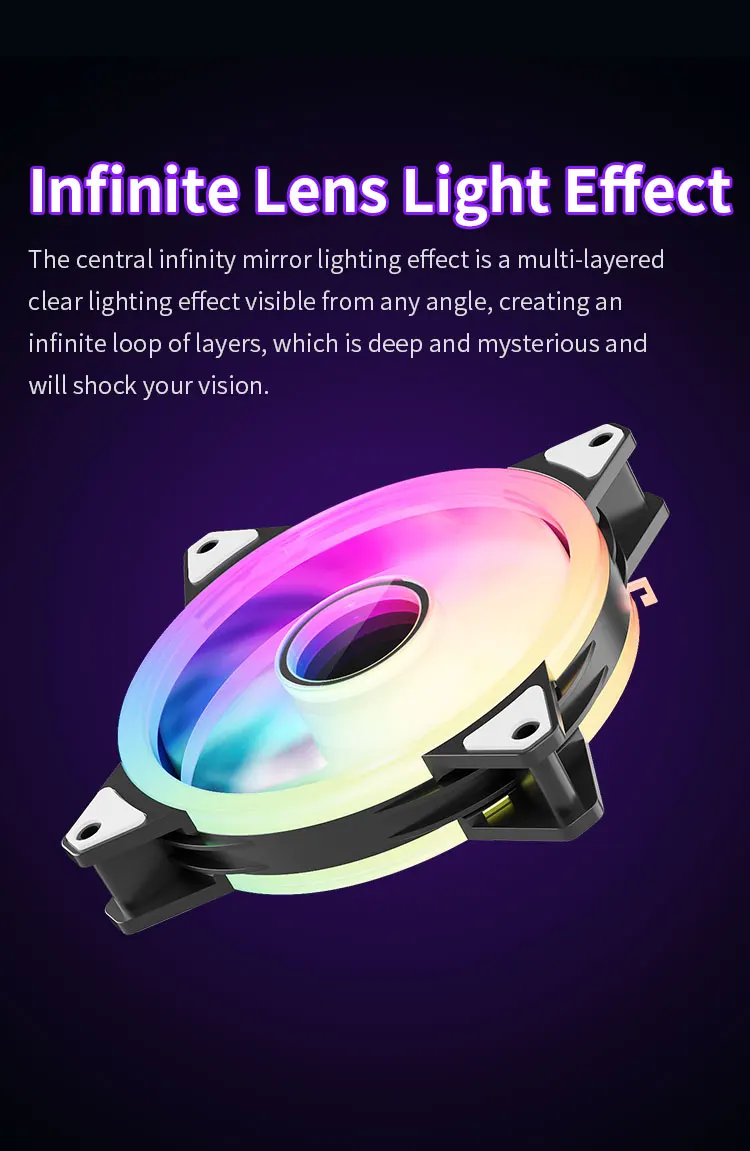 Apertura de doble anillo ARGB, efecto de luz de espejo infinito, control de temperatura inteligente PWM