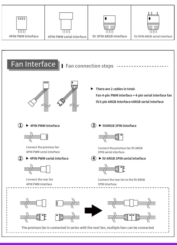 Interfaz de fuente de alimentación:12 V/4 pines 5 V/3 pines