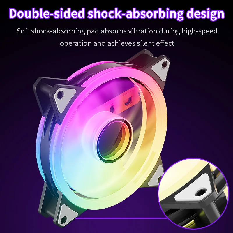 Hay almohadillas suaves que absorben los golpes alrededor del ventilador para absorber las vibraciones durante el funcionamiento a alta velocidad y lograr un efecto silencioso.