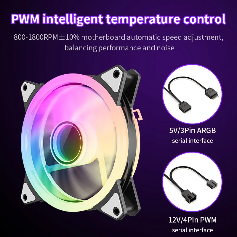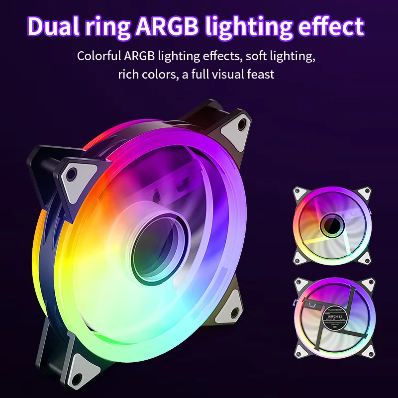 Comprar Teucer GH-12 Ventilador con cubierta de ordenador de 120mm, 12V/4 pines, PWM, 5V/3 pines, doble anillo, ARGB, espacio ilimitado, Ventilador de refrigeración de chasis silencioso