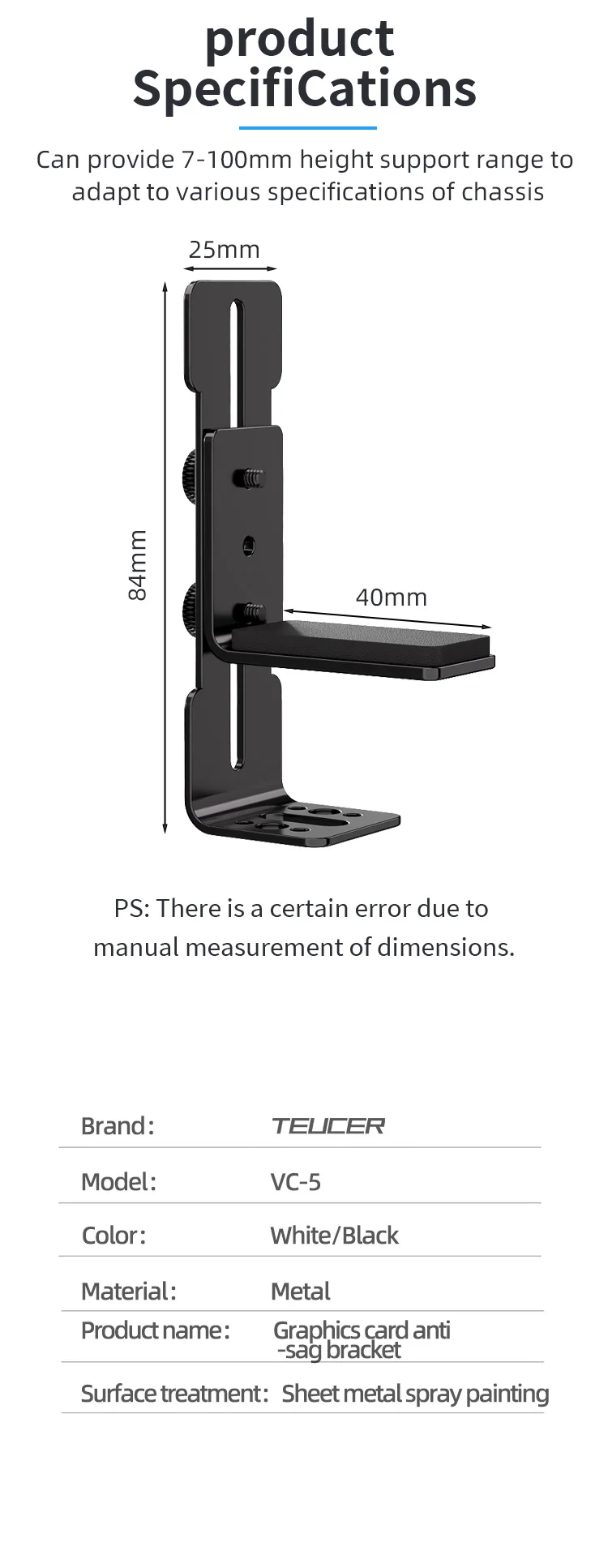 Comprar TEUCER GPU ventilador marco de soporte fijo de Metal altura ajustable 6-96mm para soporte de tarjeta gráfica RTX