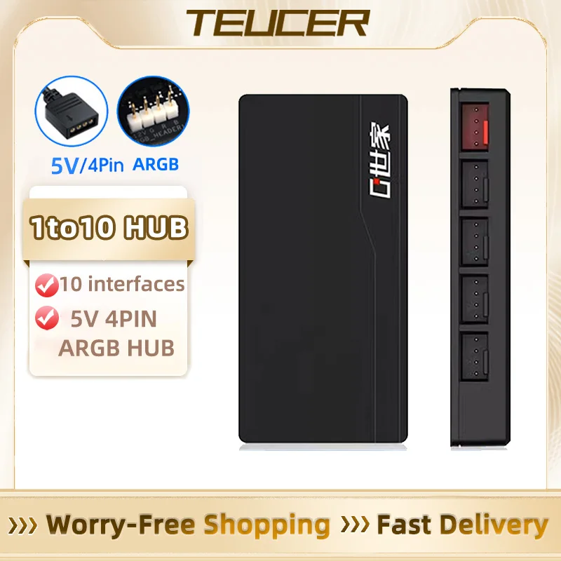 TEUCER-Hub divisor ARGB de 1 a 10 puertos, 2 en 1, 5V, 3 pines, carcasa RGB, ventilador, 12V, 4 pines, PWM, Base adhesiva, controlador de placa Base SATA