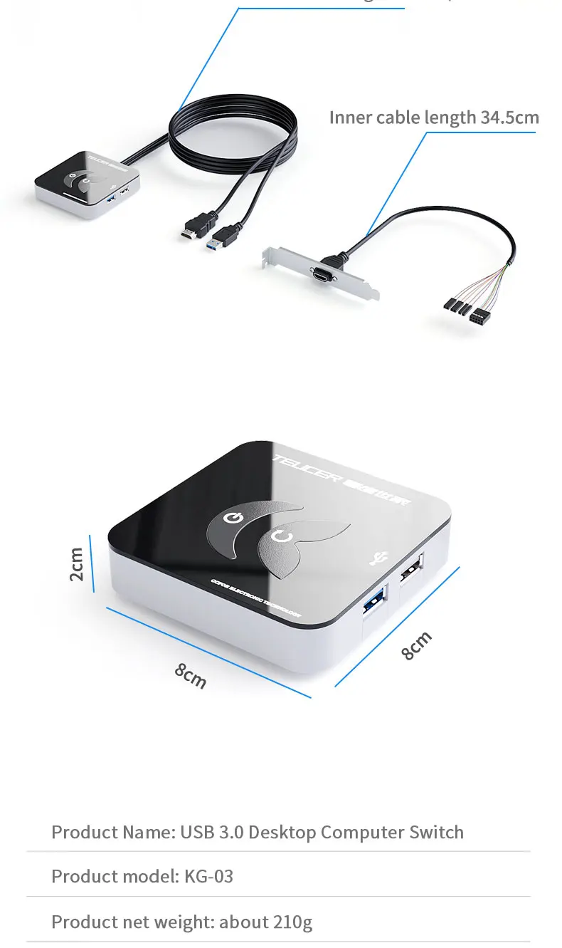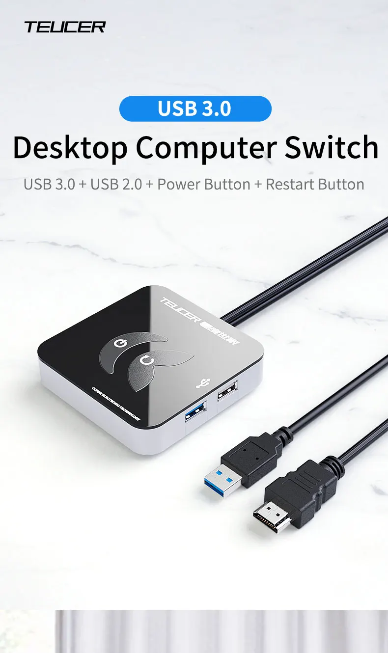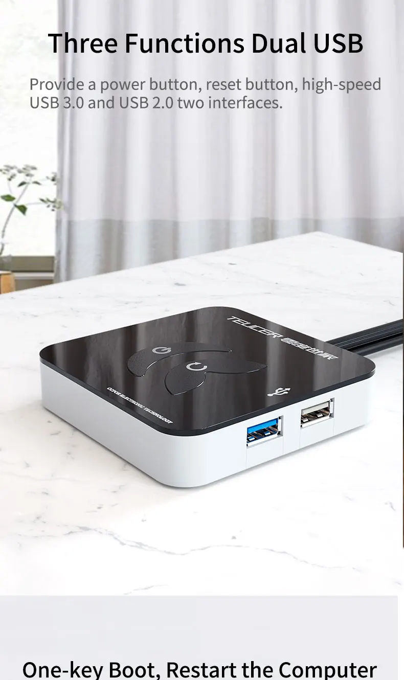 TEUCER-Interruptor de escritorio para ordenador, placa base con USB 3,0, botón de encendido y apagado externo, Cable de extensión para casa y oficina, KG-03