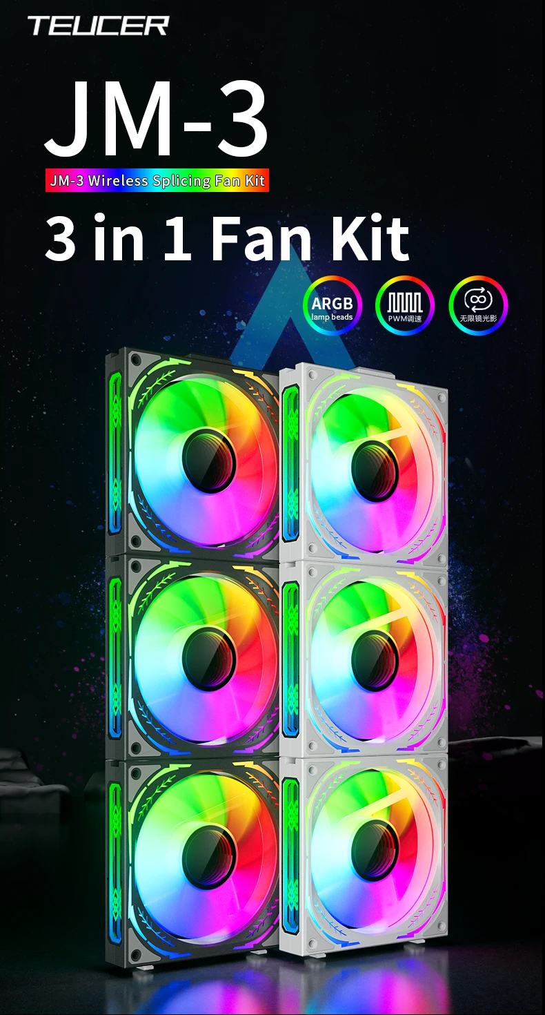 TEUCER JM-3 ARGB Ventilador de refrigeración inalámbrico para PC Kit 3 en 1