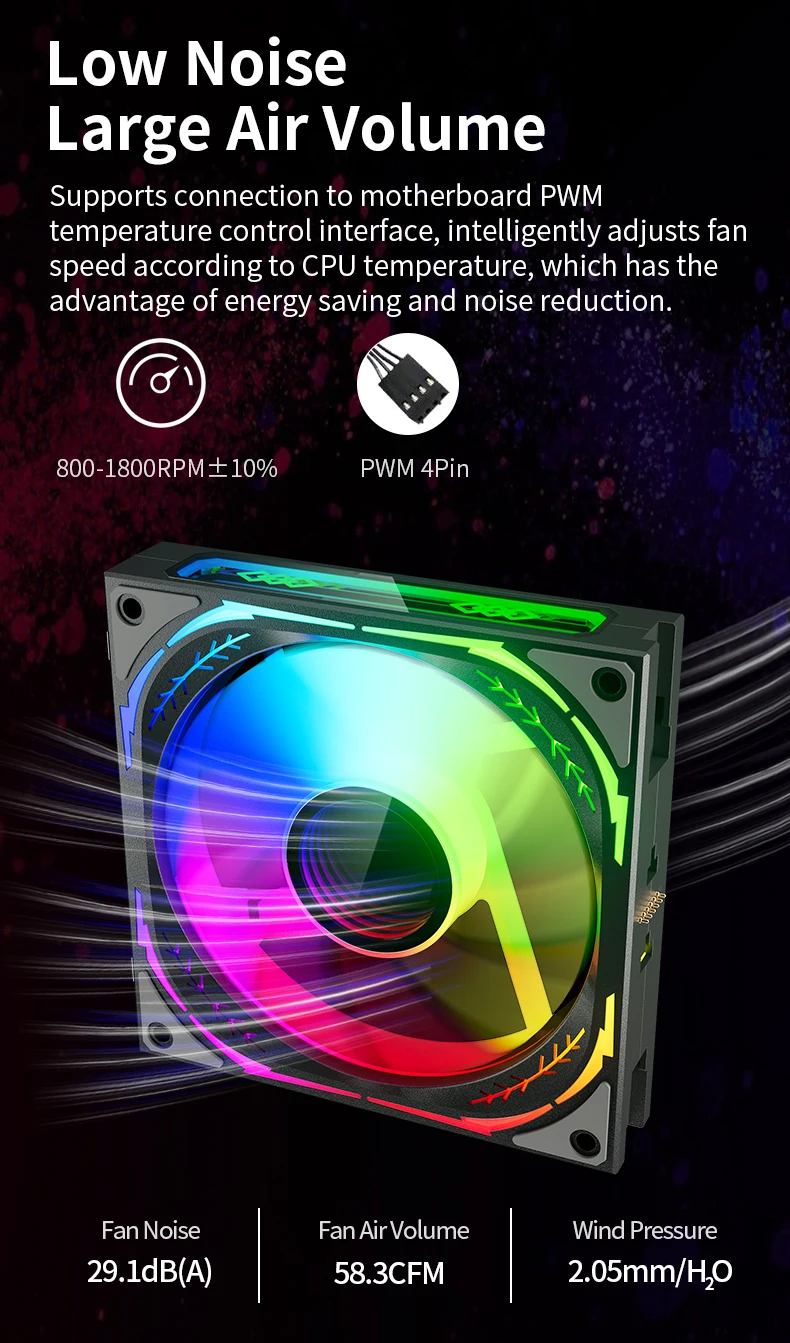 Admite el control PWM de la placa base de la velocidad del ventilador de la computadora para mantener su sistema fresco en todo momento.La velocidad inteligente de control de temperatura se puede ajustar dinámicamente entre 800 RPM y 1800 RPM.Las 9 palas equilibradas proporcionan un mayor volumen de aire a velocidades de rotación normales al tiempo que reducen el ruido.