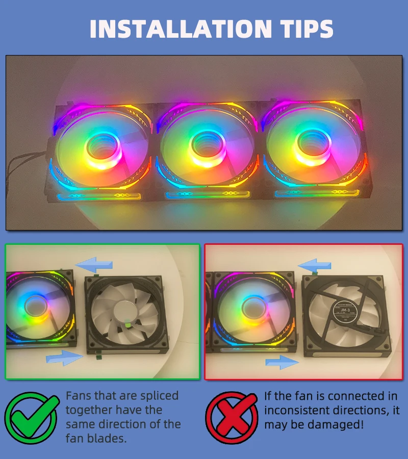 El kit de ventilador de refrigeración para computadora TEUCER JM-3 adopta un innovador diseño de bloqueo empalmado en el marco del ventilador y JM-3 adopta un conector de contacto directo que es más conveniente y tiene una conductividad estable.El kit de ventilador 3 en 1 es como un solo cuerpo y dice adiós a los engorrosos cables de los ventiladores comunes, lo que le ayuda a crear una carcasa de computadora de bricolaje limpia y hermosa.