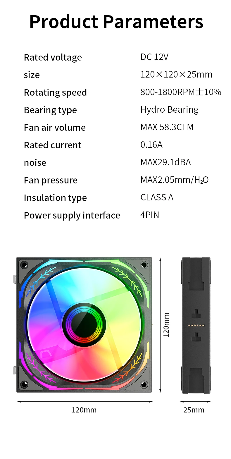 Tamaño del ventilador: 120x120x25mm