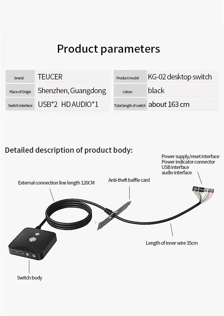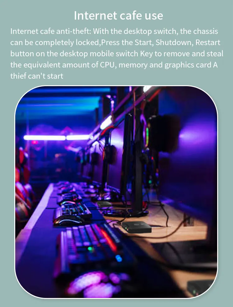 It can be used as a replacement switch for the case when the power button of the PC case does not work with a bad contact. In addition, it can be used as an extension switch from the main unit.