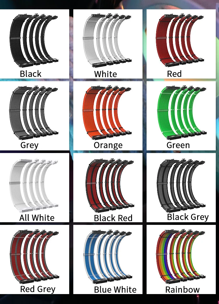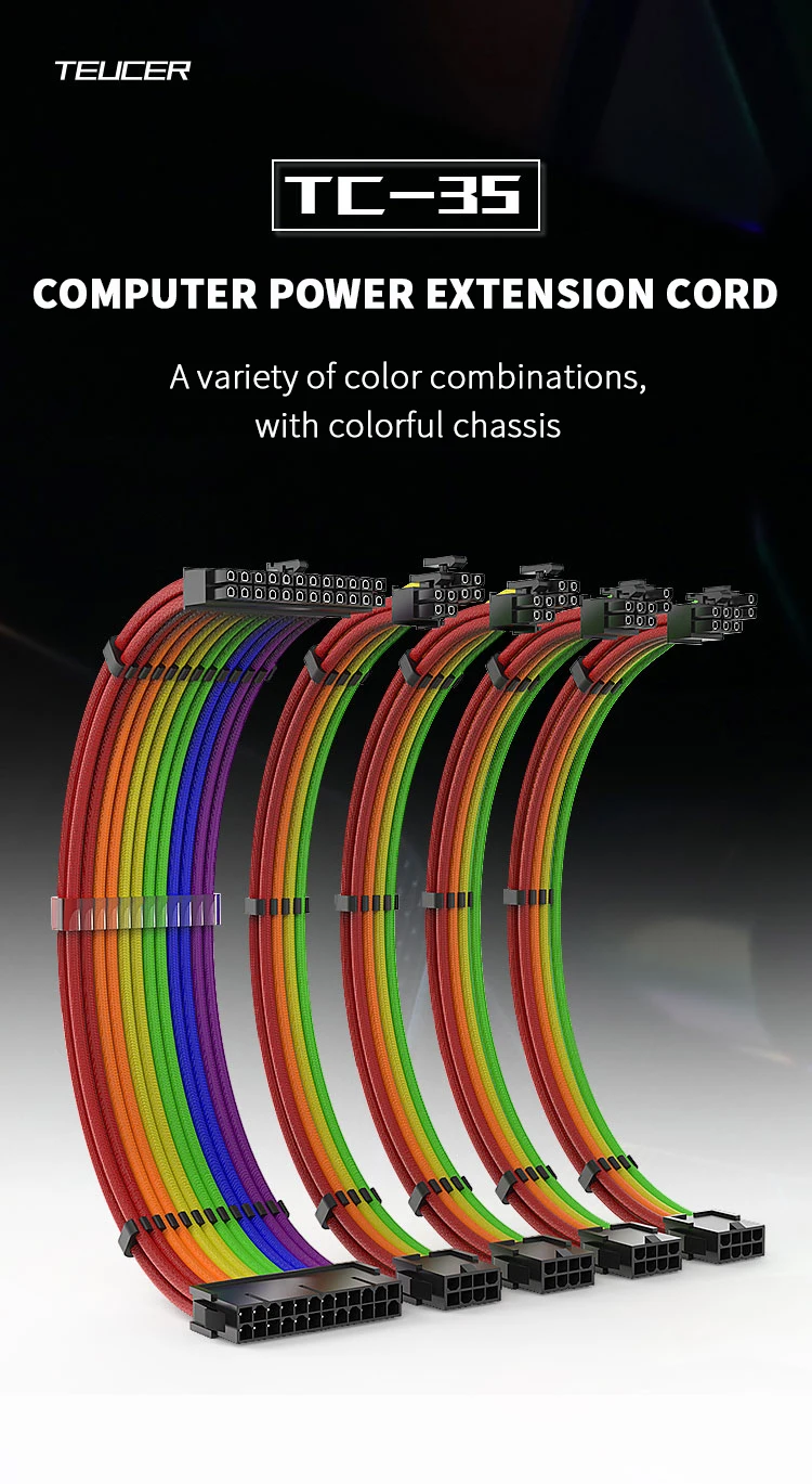 TEUCER TC-35 Series PSU Extension Cable Kit , Solid Color Cable Solid Combo 350mm ATX24Pin PCI-E8Pin CPU8Pin With Combs