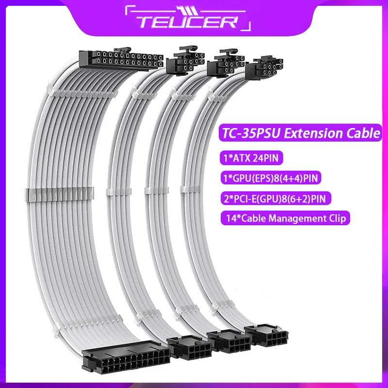 TEUCER TC-35 PSU Extension Cable Kit , Solid Color Cable Solid Combo 350mm ATX24Pin PCI-E8Pin CPU8Pin With Combs Power Cable