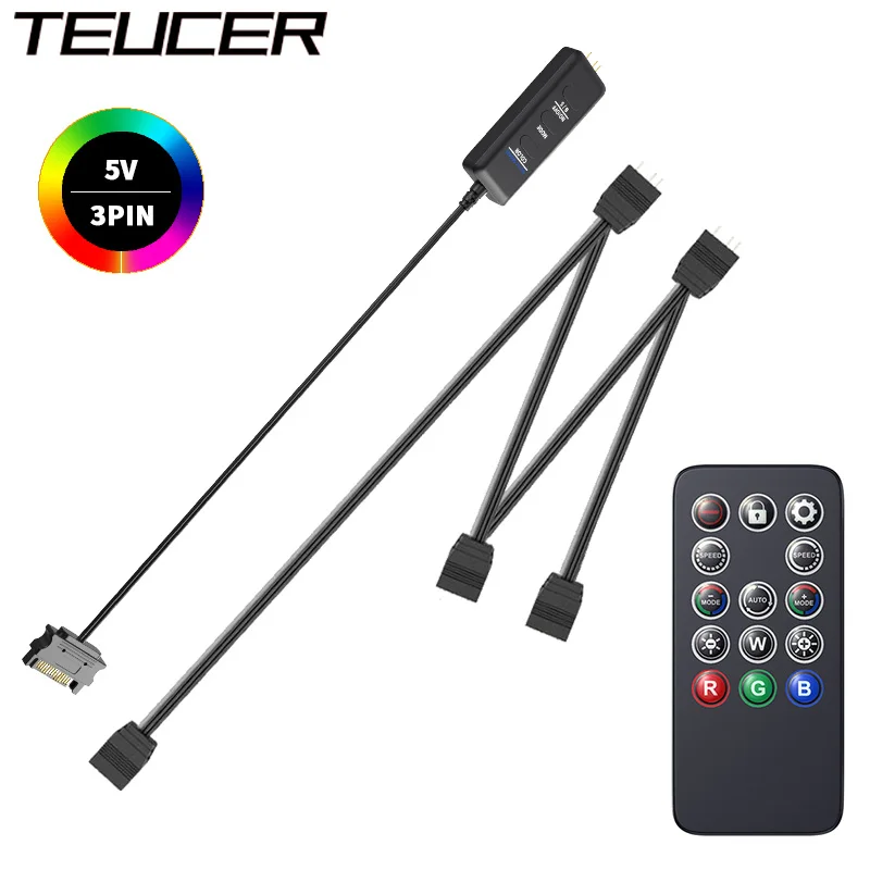 Comprar TEUCER LC-S50 ARGB 5V 3PIN a SATA fuente de alimentación placa base interfaz de sincronización controlador de luz para ventilador de cubierta de computadora