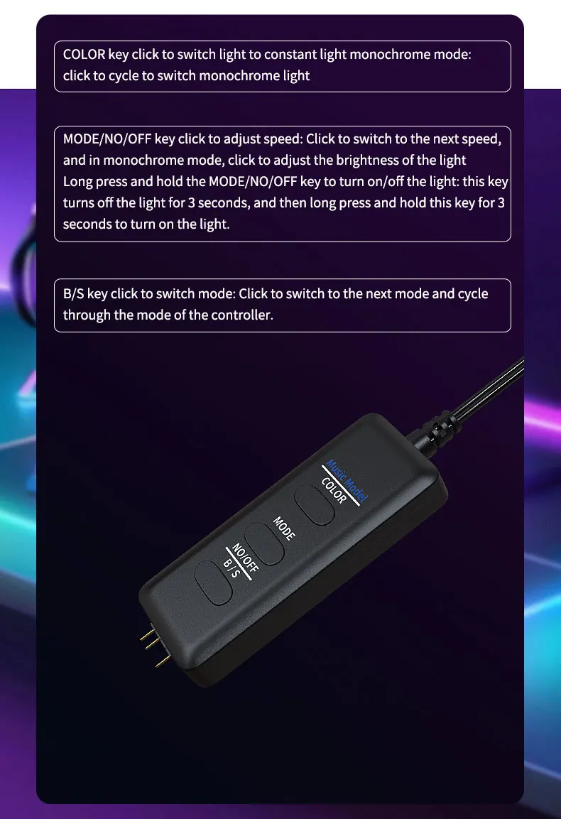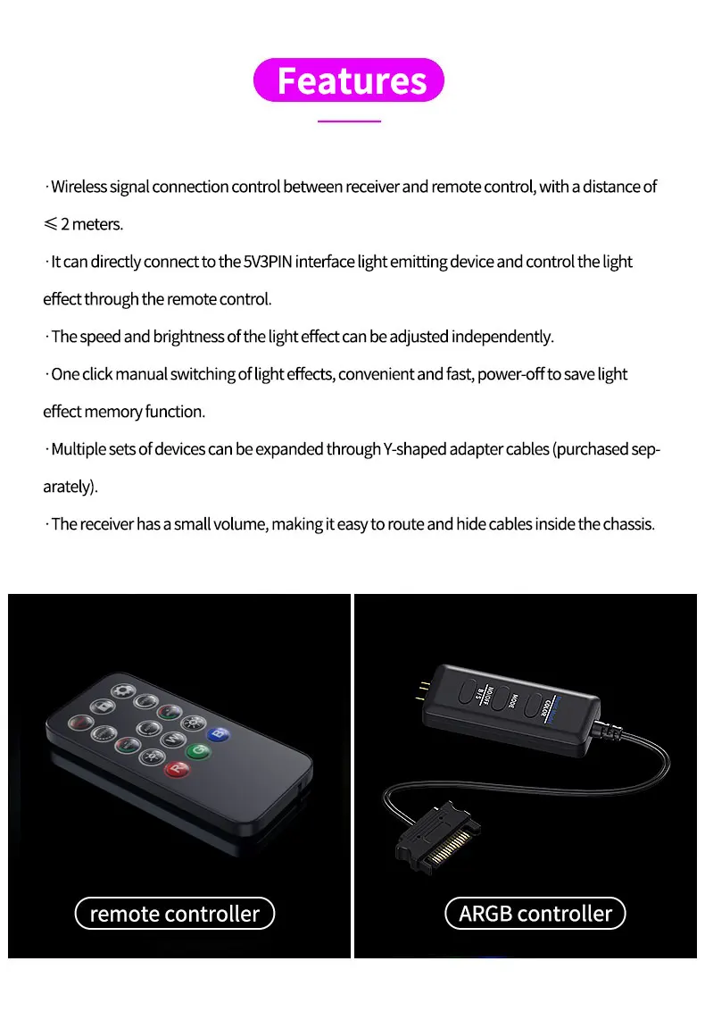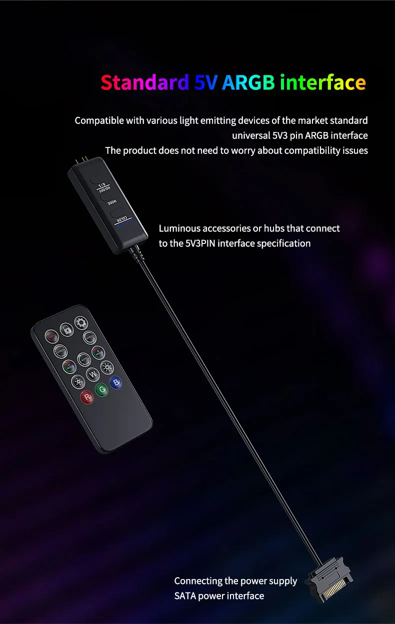 *Se puede conectar directamente al dispositivo emisor de luz de interfaz 5V3PIN y el controlador puede controlar el efecto de luz.
