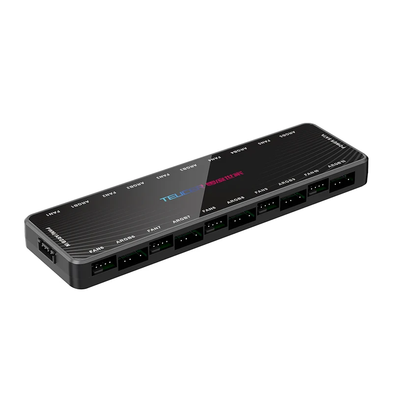 TEUCER LP-10 1 a 10 ARGB/PWM HUB 5 puertos 5V 3 pines ARGB y 5 puertos 4 pines PWM HUB Fan HUB Adaptador SATA Power Interface