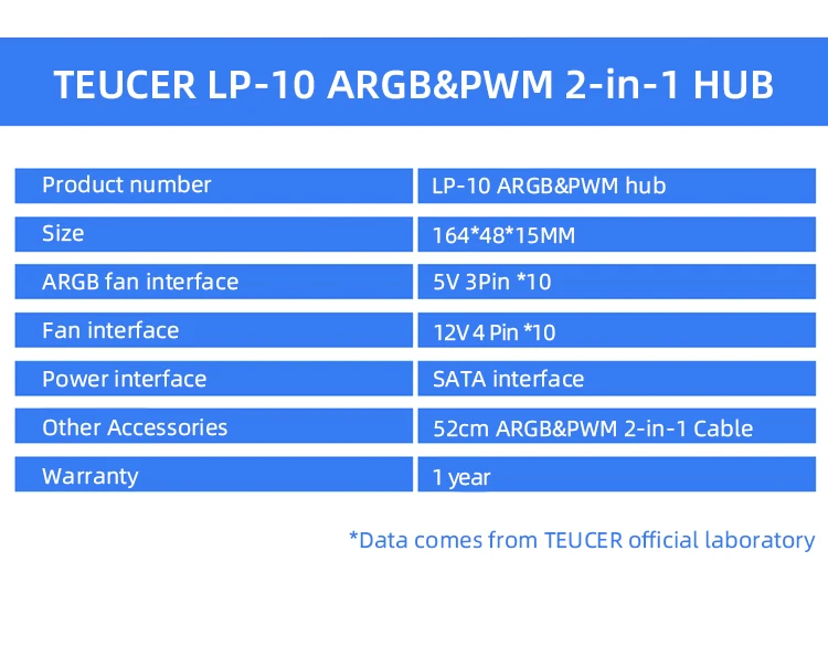 Comprar TEUCER LP-10P 12V 4Pin PWM y 5V 3Pin ARGB Fan Hub - Sincronización de 10 vías, alimentado por SATA, divisor RGB direccionable para refrigeración de PC