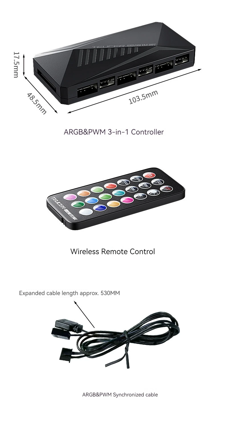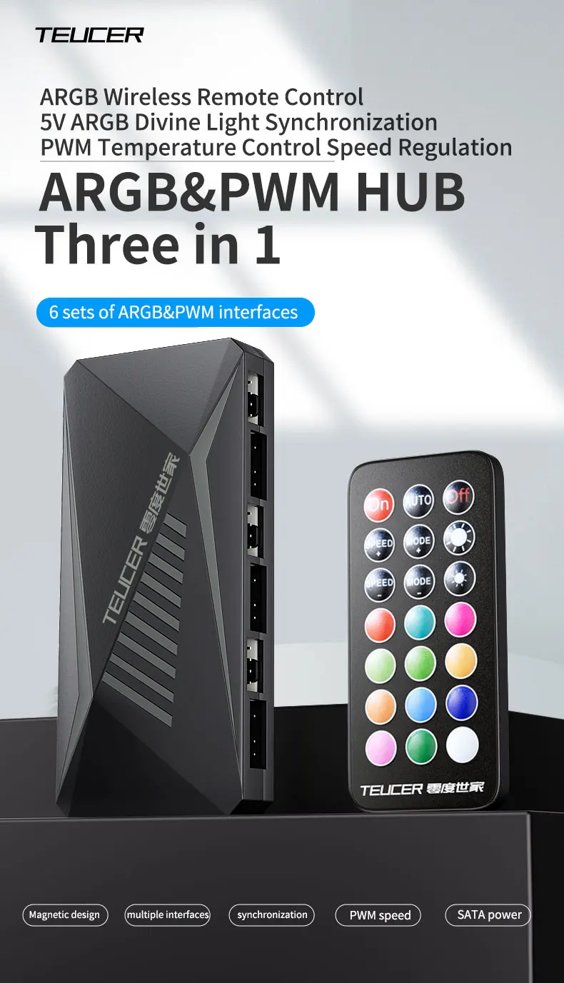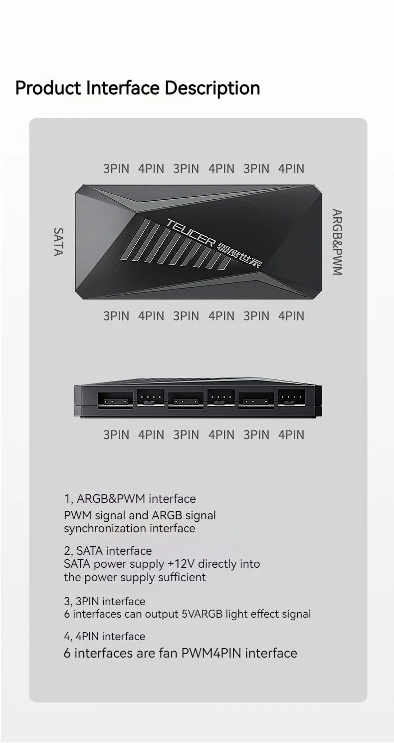 TEUCER LP-6P ARGB Control remoto divisor de 6 vías 4 pines PWM ventilador de refrigeración Hub para ordenador PC carcasa chasis radiador fuente de alimentación SATA