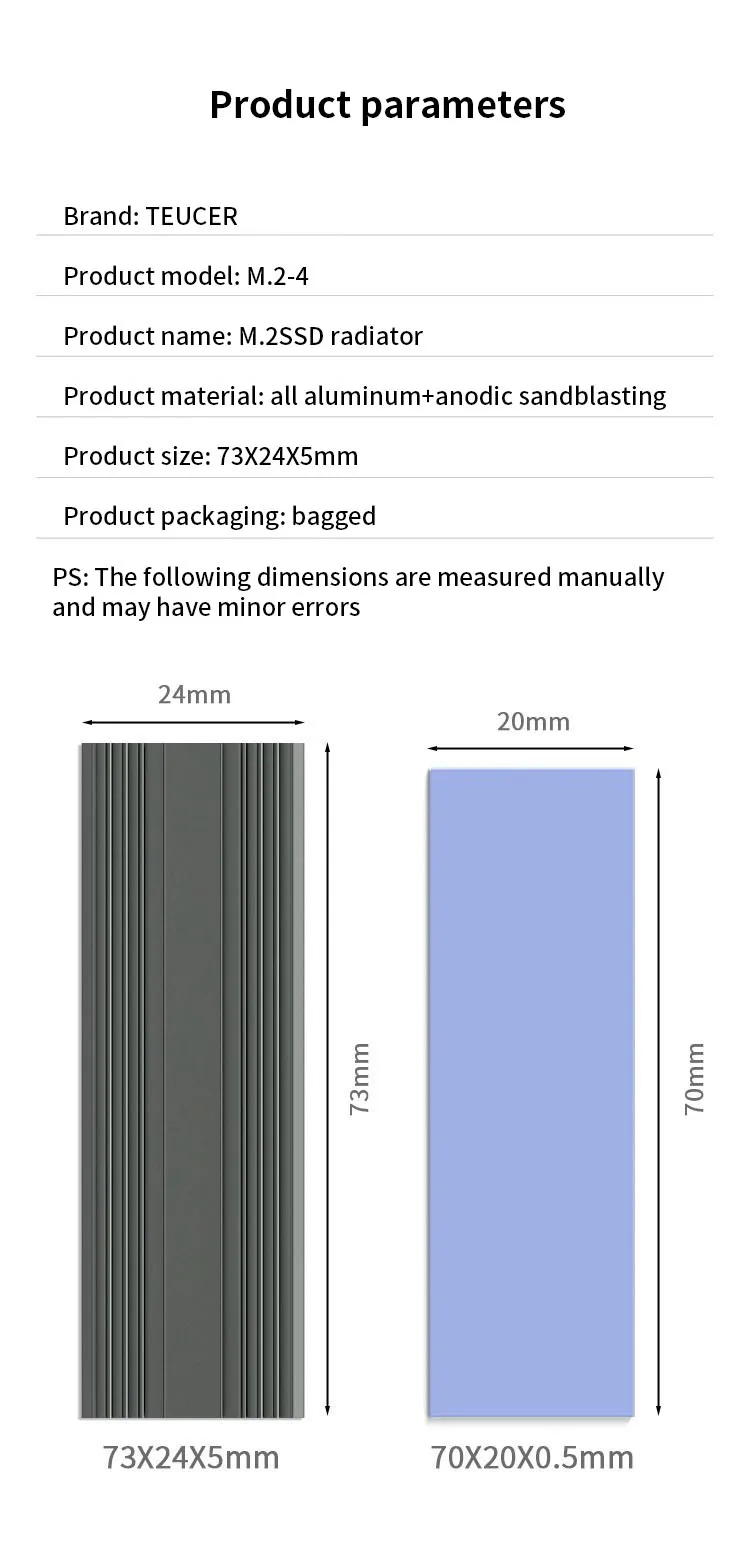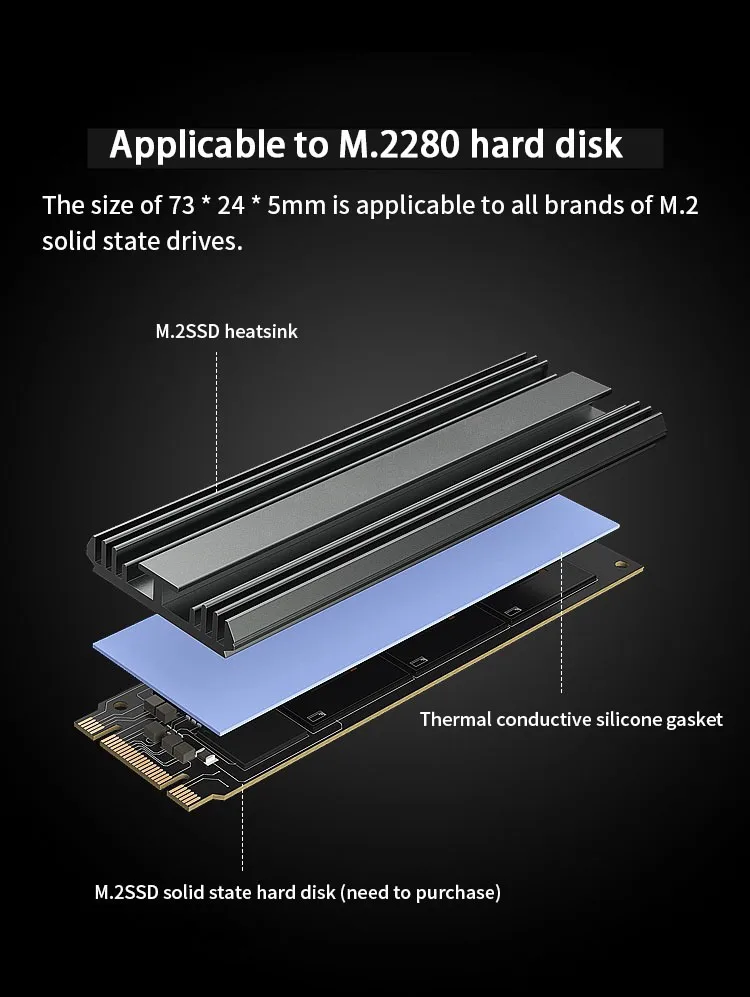 TEUCER M.2 SSD disipador de calor M2 2280 radiador de aluminio de disco duro de estado sólido para PC de escritorio SSD PS5