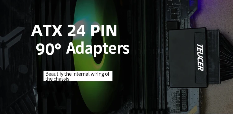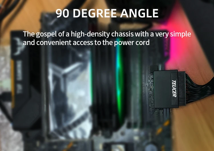 TEUCER Computadora ATX 90 grados 24pin Adaptador de enchufe de alimentación Placa base Conectores de alimentación Cables de fuente de alimentación modular