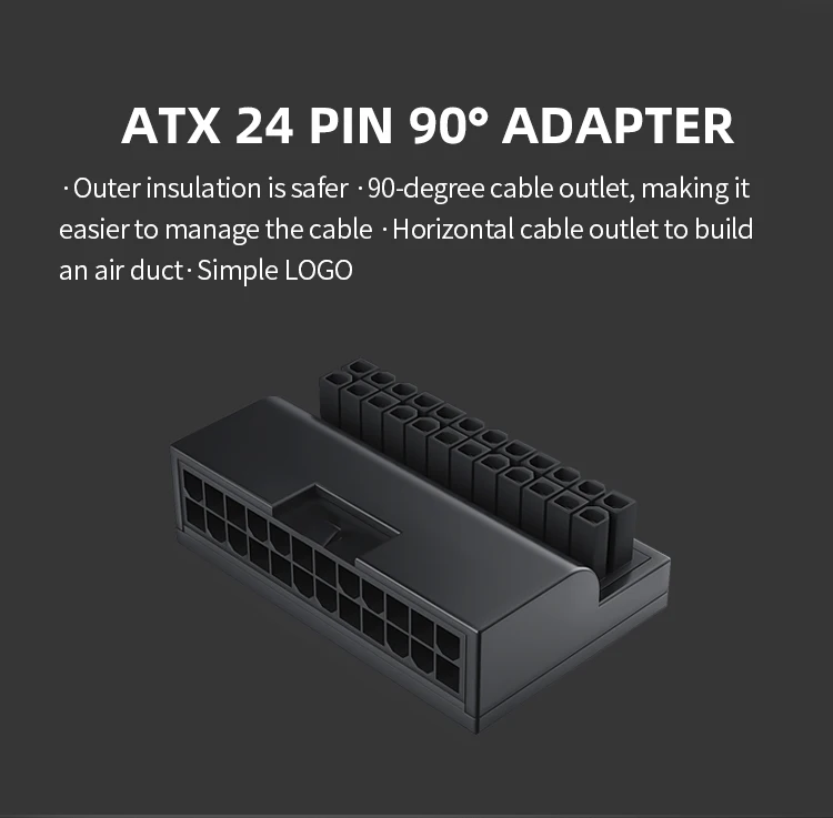 Una pieza. Compatible con cualquier requisito de cableado de 24 Pines de la placa base, puede girar el cableado de 24 pines 90 °.