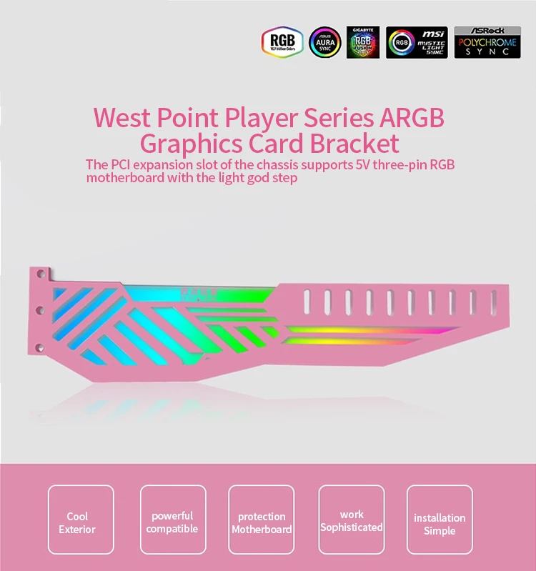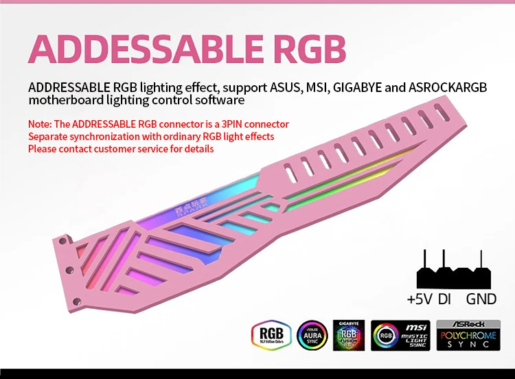 TEUCER-Soporte de GPU rosa para tarjeta gráfica Horizontal, 5V, 3 pines, ARGB, VGA, funda de PC de escritorio, accesorios de bricolaje
