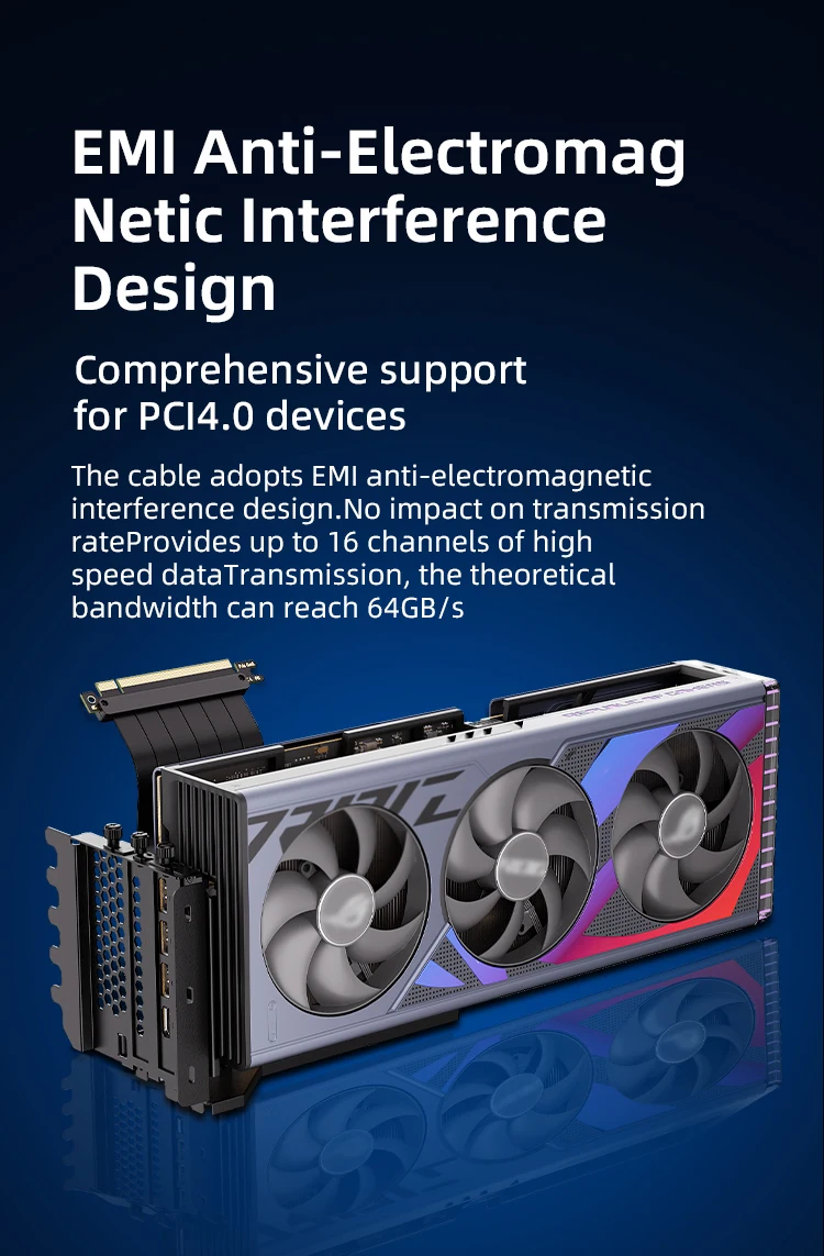TEUCER PCI-E 3,0/4,0 Tarjeta gráfica Soporte de montaje vertical PCI-E 4,0x16 Cable de extensión 200mm GPU Kit de soporte de montaje