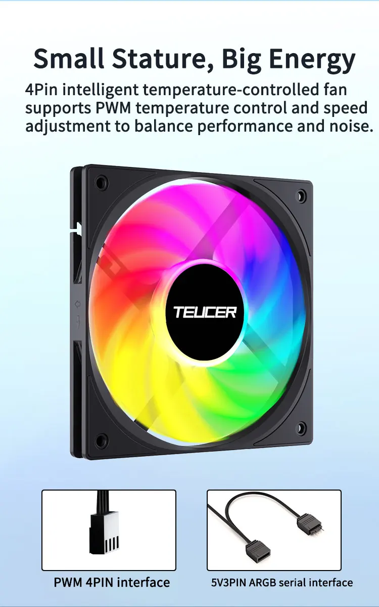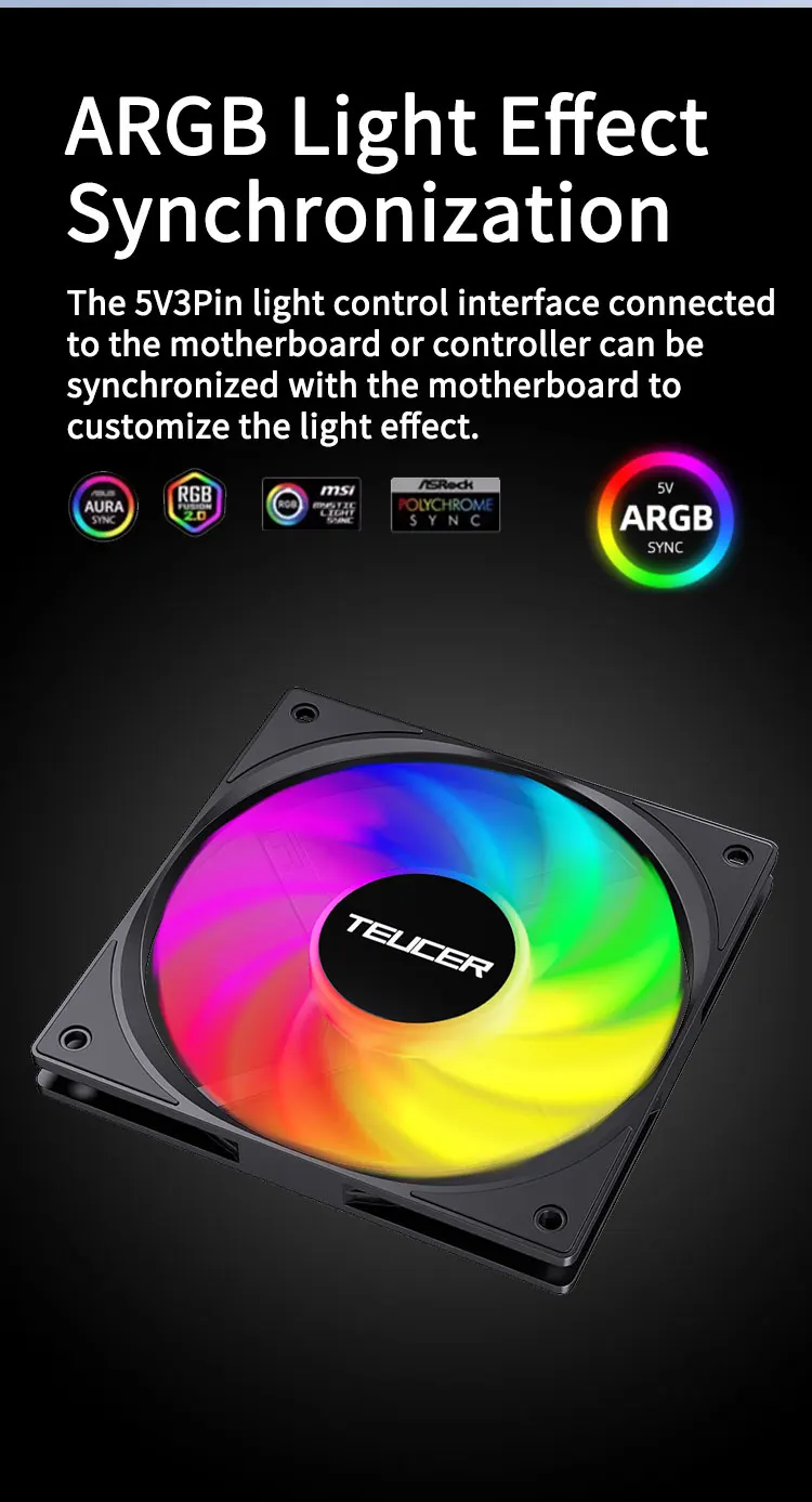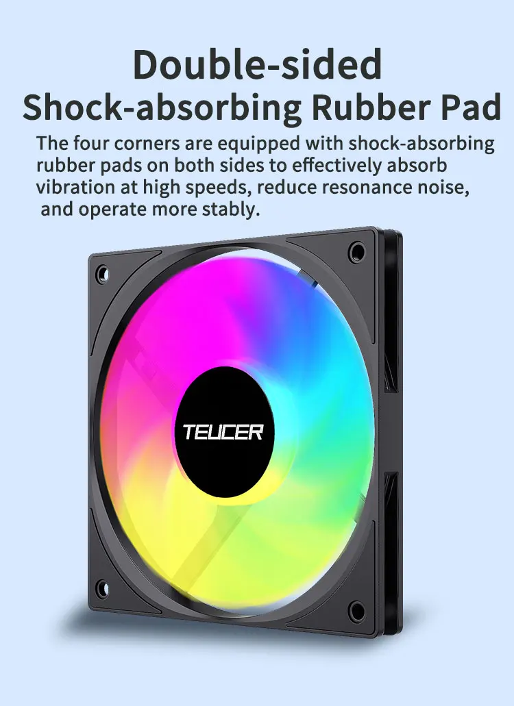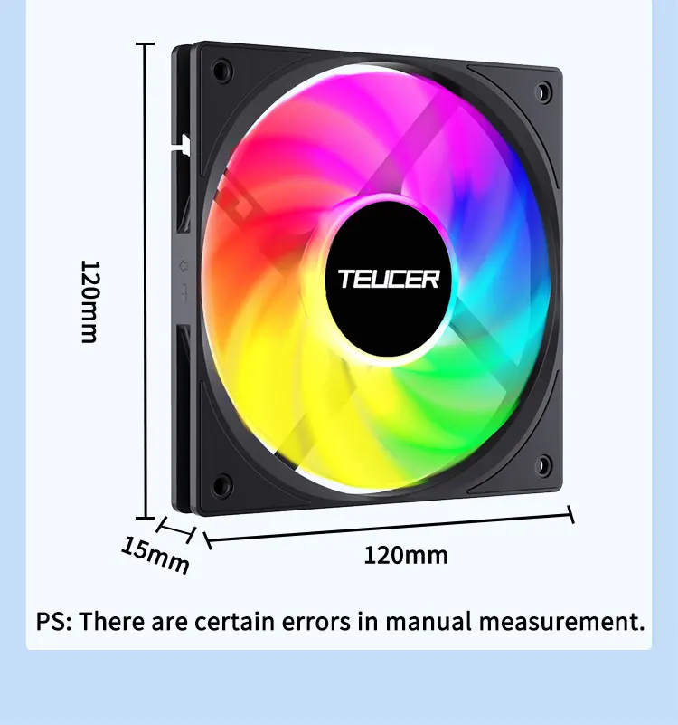 El ventilador TEUCER UT-12015 ARGB cuenta con un tamaño espacioso de 120 mm, lo que garantiza un flujo de aire óptimo para el sistema de refrigeración de su PC.