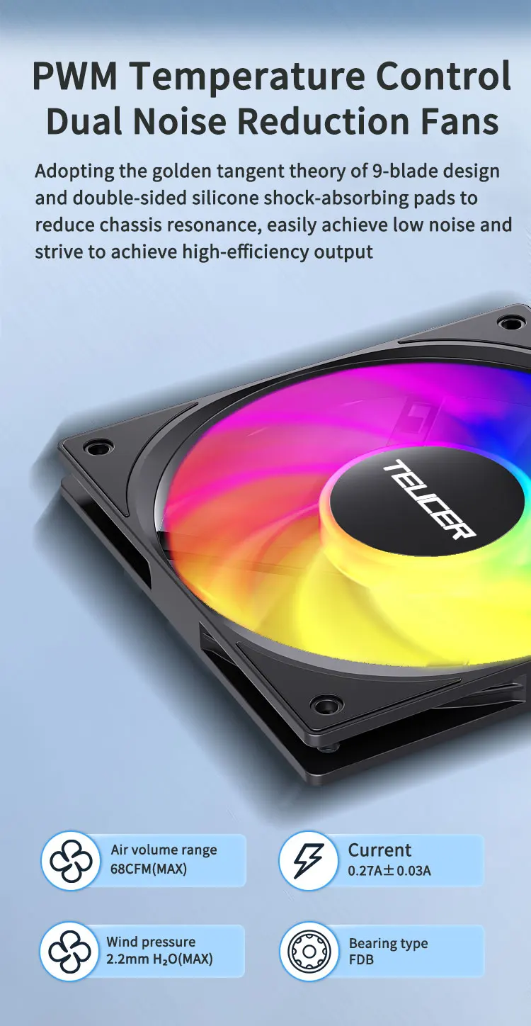 Equipado con tecnología FDB (Rodamiento Dinámico Fluid), este ventilador ofrece un funcionamiento suave y una vida útil prolongada para un rendimiento de enfriamiento confiable.