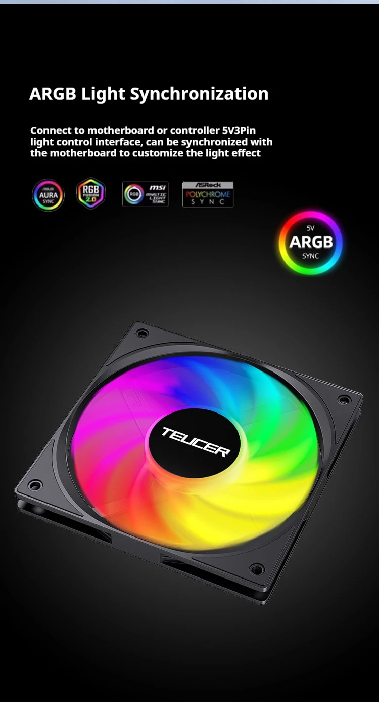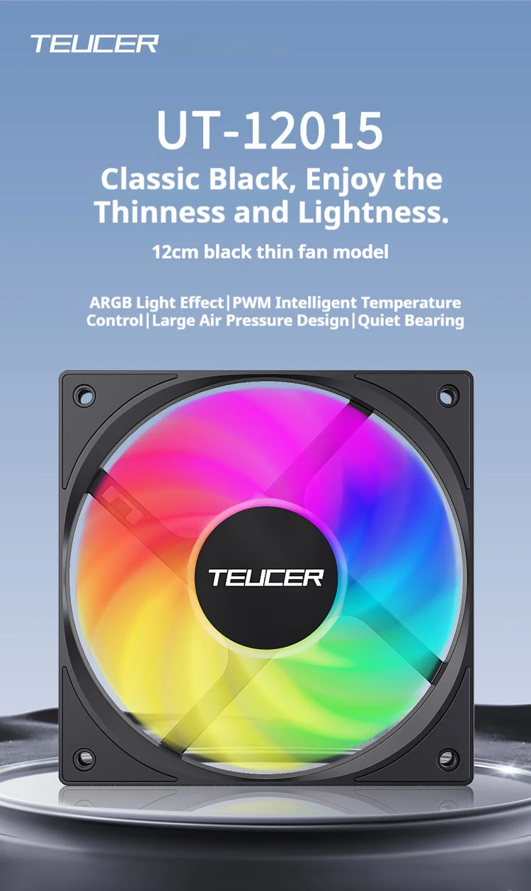 TEUCER UT-12015 ventilador ARGB ventilador de computadora fino de 120mm rodamiento FDB efecto de iluminación ARGB refrigeración silenciosa adecuada para ventilador de CPU de chasis