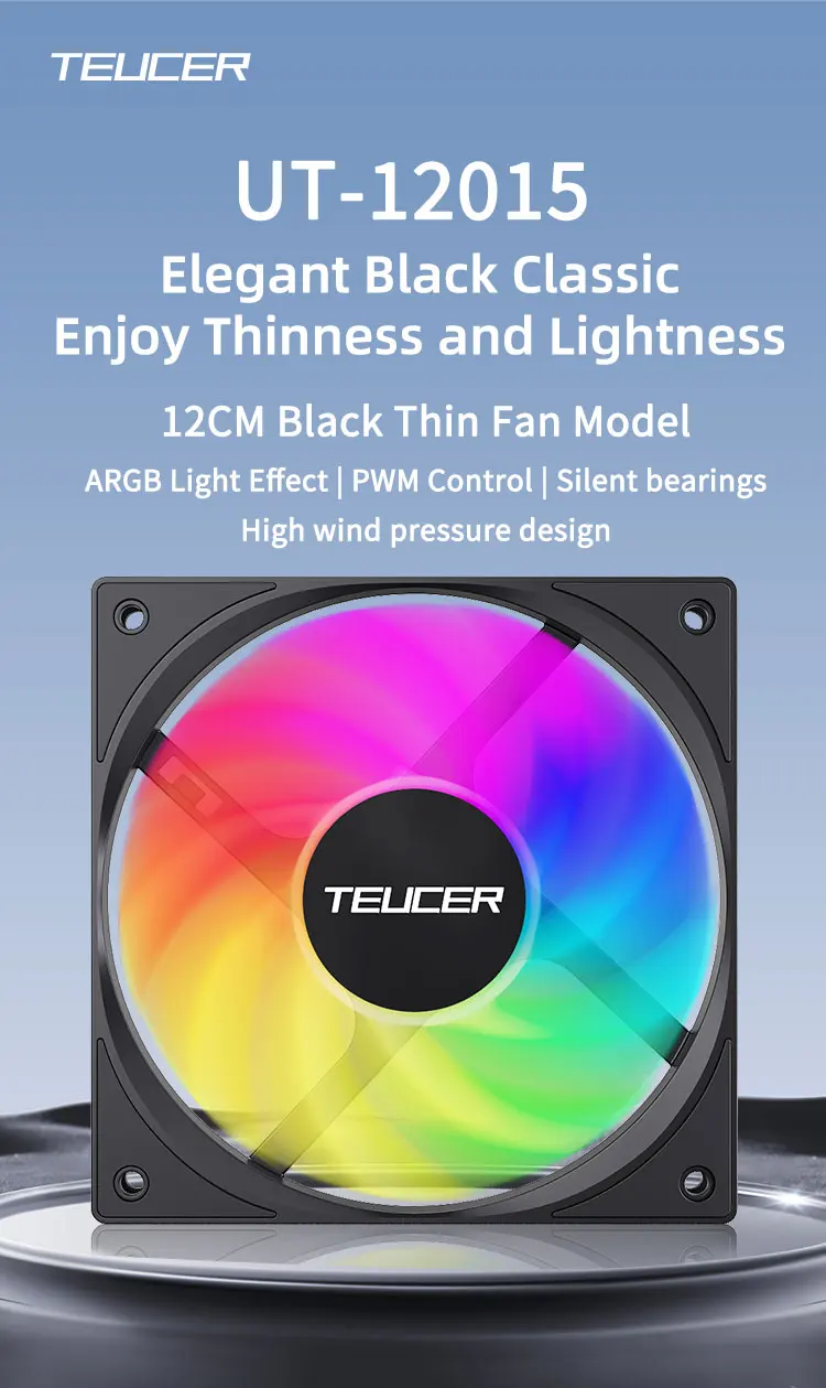 TEUCER UT-12015 ventilador de chasis ultrafino de 12CM 12V 4PIN PWM diseño silencioso de alta presión de viento 15MM de espesor ventilador con cubierta de PC para jugadores