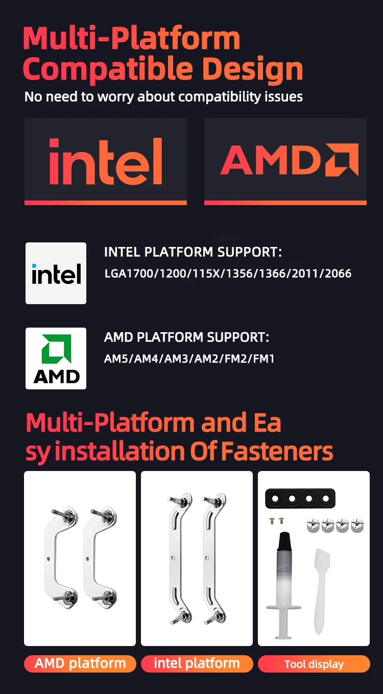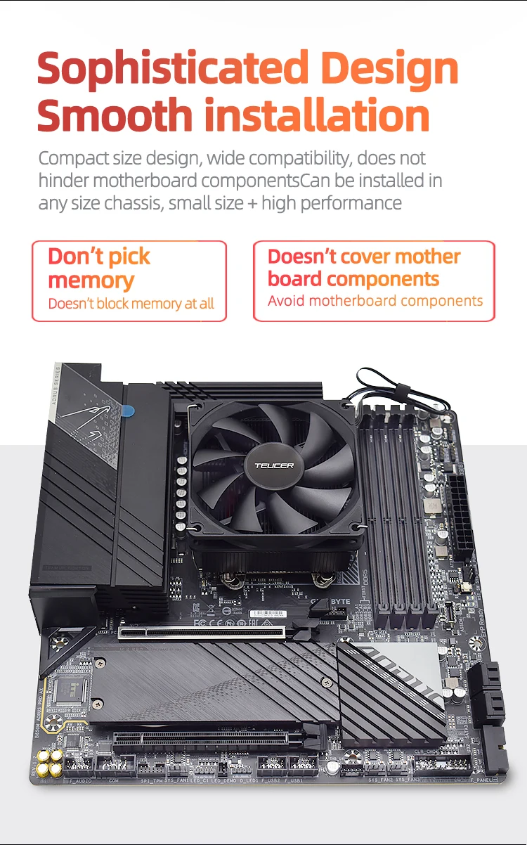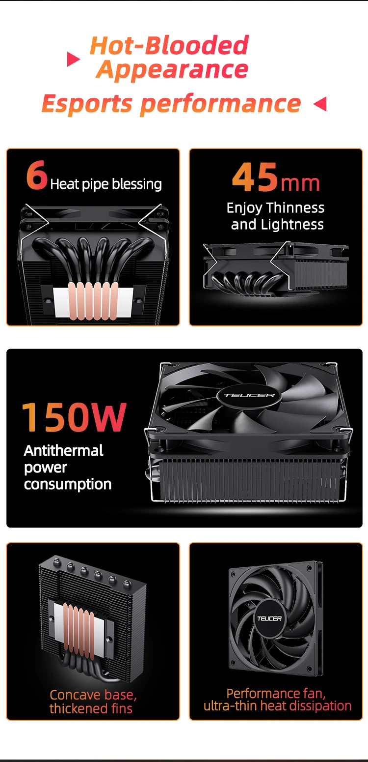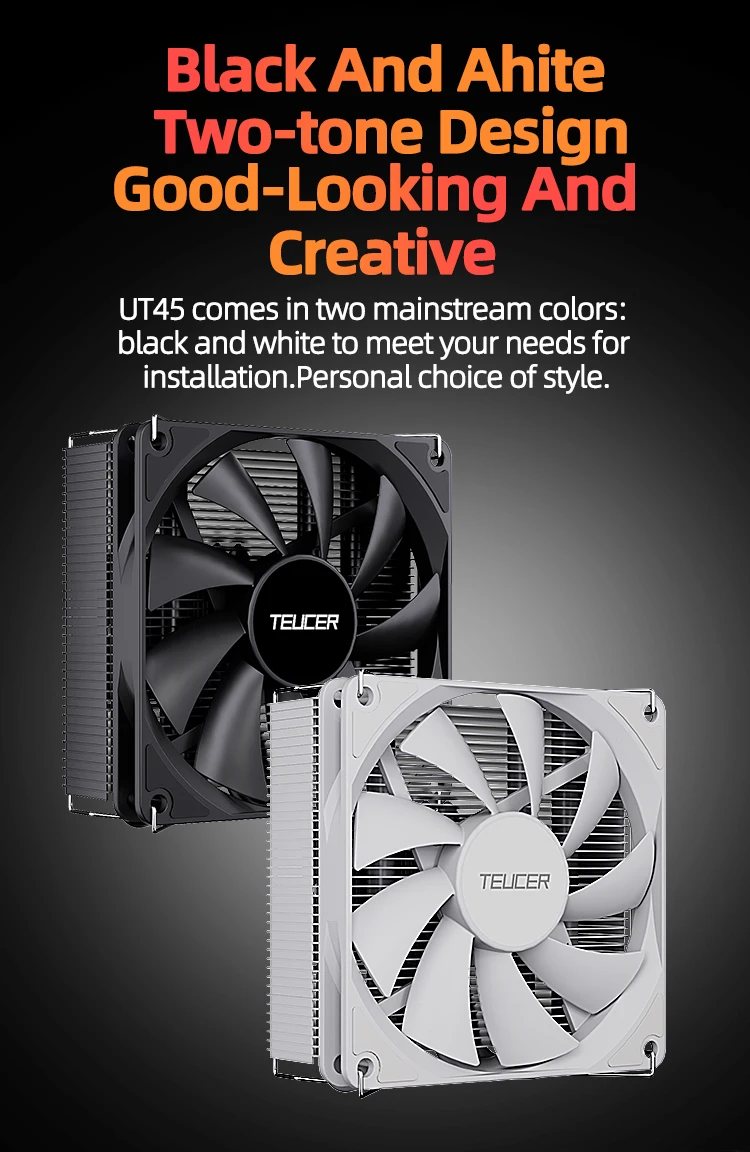 TEUCER UT-45 Enfriador de CPU de perfil bajo 4 tubos de calor Radiador fino de presión hacia abajo - Compatible con Intel LGA1700/1200/2011/2066 AMD AM4/AM5
