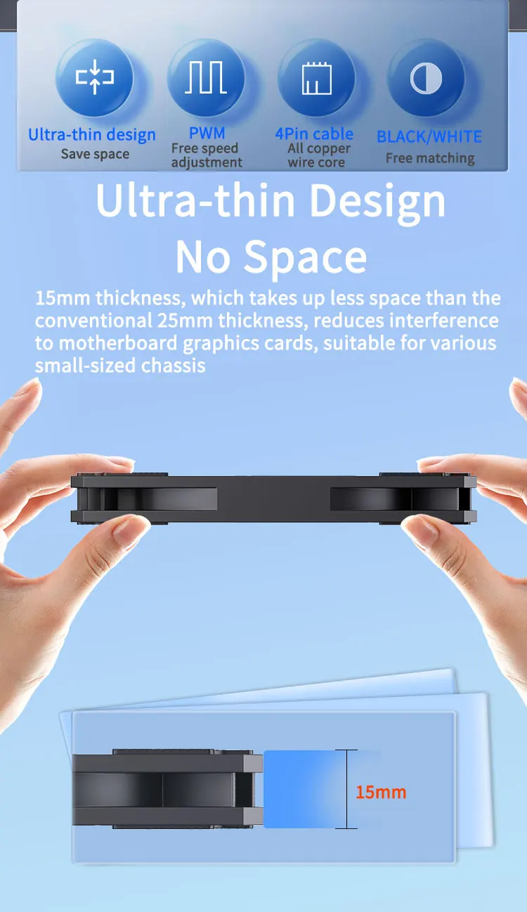 Teucer UT14015 14cm ultrafino 15mm 4Pin PWM rodamiento hidráulico ventilador silencioso 12V alto flujo de aire para caja de PC refrigeración del radiador del ordenador