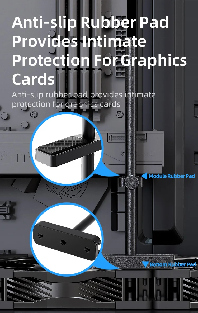 Equipado con almohadillas de goma, protege perfectamente su tarjeta gráfica contra rayones y desgaste, y garantiza la estabilidad.