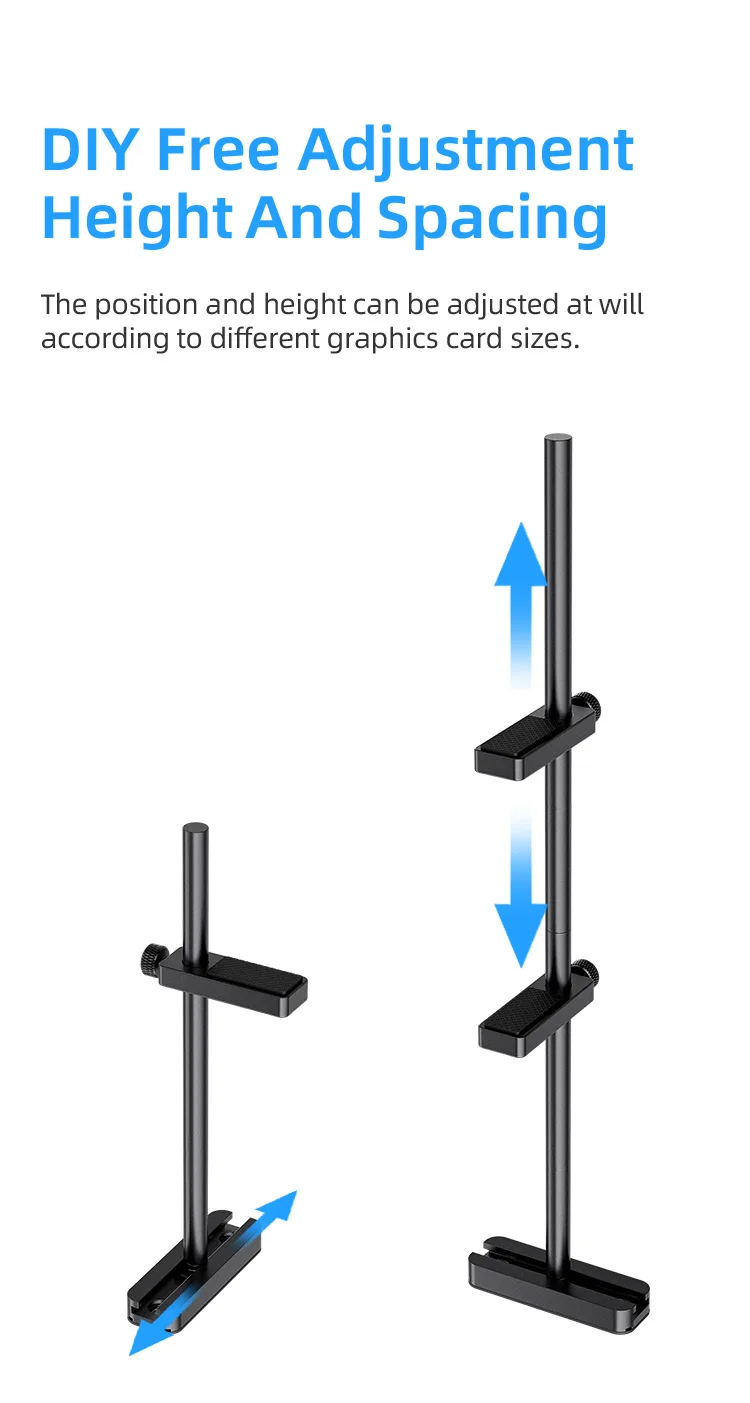 La posición y la altura se pueden ajustar a voluntad según los diferentes tamaños de tarjetas gráficas.