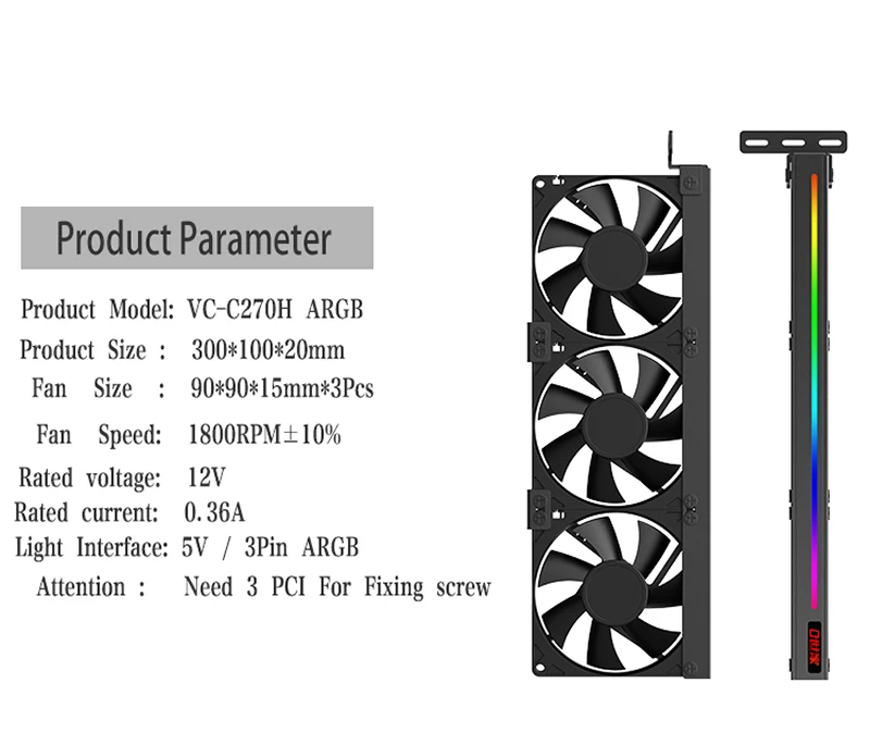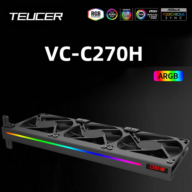TEUCER VC-C270H 300x100x20mm lado Universal ARGB 5V 3 pines cabezales direccionables GPU ventilador de refrigeración silencioso para la mayoría de las tarjetas gráficas