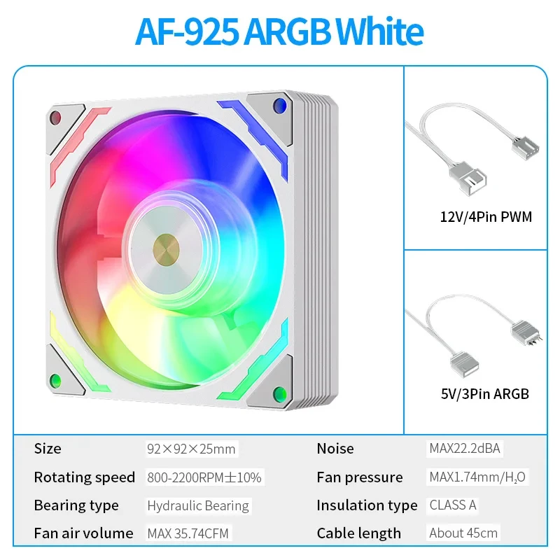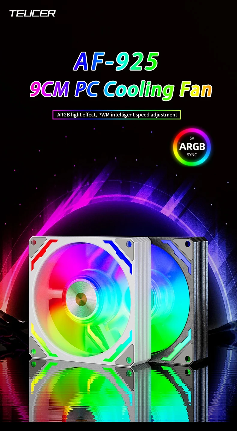 TEUCER AF-925 ARGB PC Fan PC Radiador Ventilador de refrigeración 92mm ITX Ventiladores de caja de computadora 9cm Ventilador de chasis 800-2200RPM