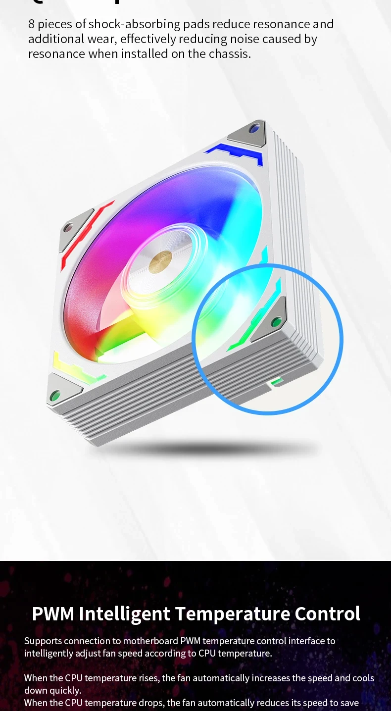 Admite la conexión a la interfaz de control de temperatura PWM de la placa base para ajustar de forma inteligente la velocidad del ventilador de acuerdo con la temperatura de la CPU.