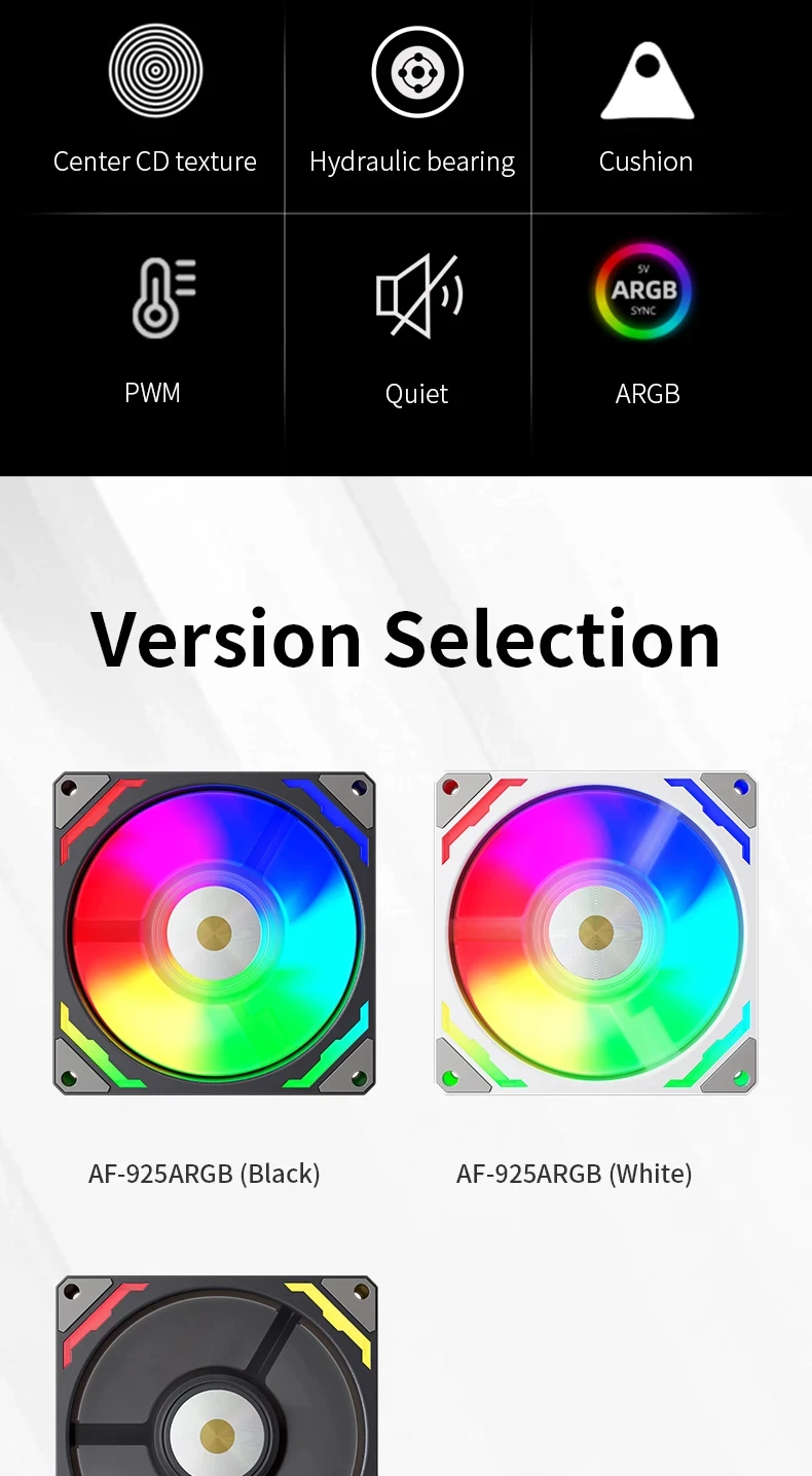 El diseño del marco de AF-925 tiene 7 líneas para fortalecer la estructura, lo que puede garantizar efectivamente que el ventilador no se deforme fácilmente.