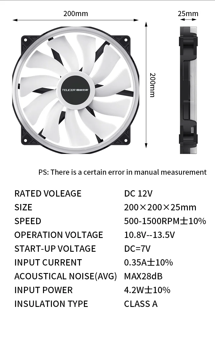 TEUCER-ventilador de caja de ordenador, ventilador de refrigeración de CPU de alto volumen de aire, direccionable, RGB, 200mm, ARGB, 20CM, 4 pines, PWM, 5V, 3 pines