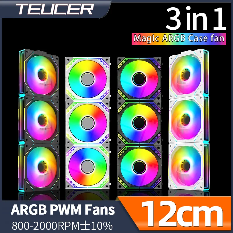 Comprar TEUCER-ventilador de caja de PC mágico 3 en 1, sin empalme, 120mm, Circular Mille Layer Mirror PWM ARGB, ventilador de refrigeración líquida para gabinete de PC