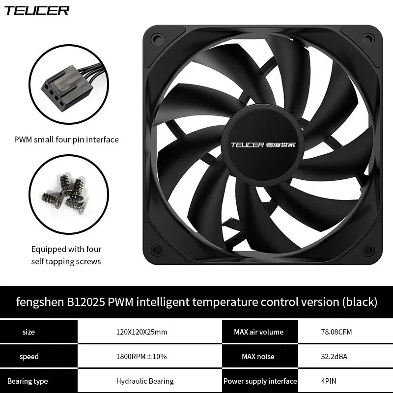 With the CPU temperature automatically adjusting the speed,the peak speed can reach 1800RPM±10%.