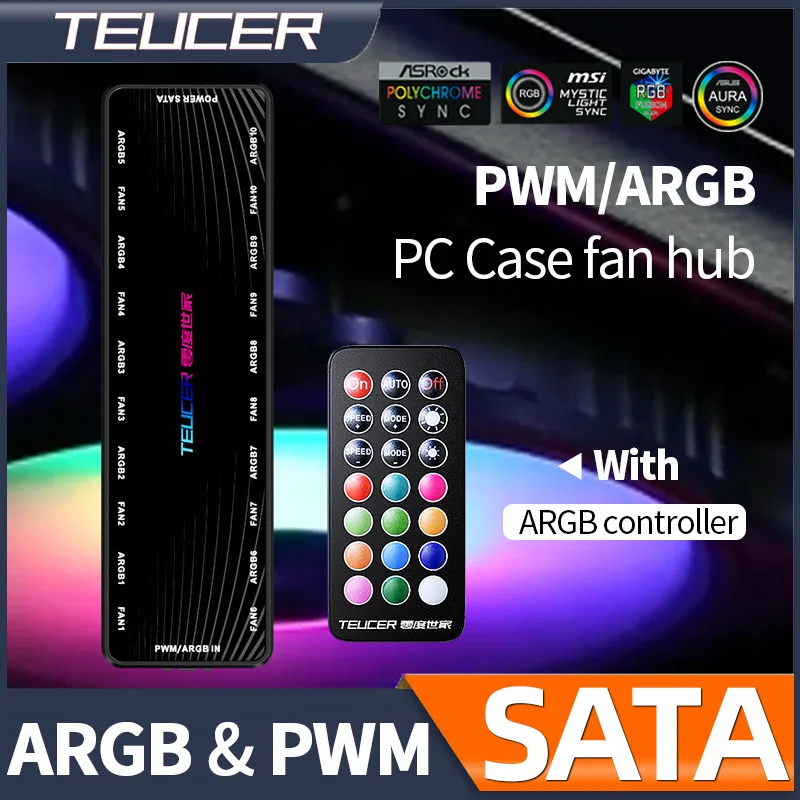 Comprar Teucer ventilador de refrigeración 6/10 vías 5V AURA ARGB SYNC Hub Sata alimentado 4 pines PWM concentrador de succión magnética para caja de PC con controlador ARGB