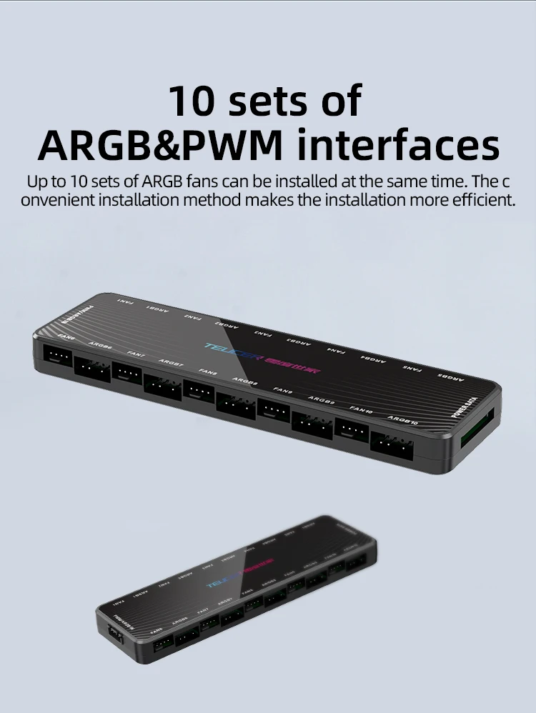 Teucer ventilador de refrigeración 6/10 vías 5V AURA ARGB SYNC Hub Sata alimentado 4 pines PWM concentrador de succión magnética para caja de PC con controlador ARGB