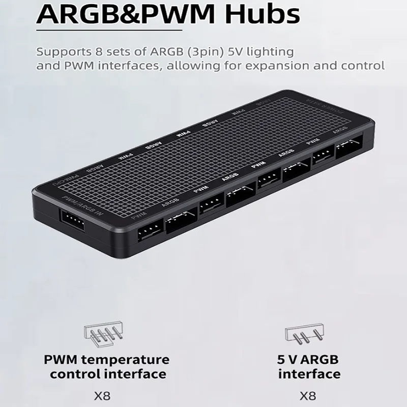 Comprar TEUCER-ventilador de refrigeración para ordenador, dispositivo de 1 a 8, 5V, 3 pines, ARGB, Hub PWM, ARGB direccionable, 5V