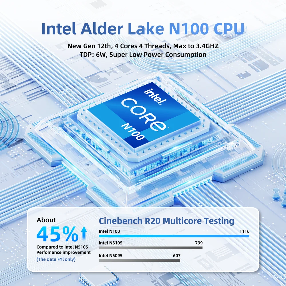 Procesador Intel N100, 6M Cache, hasta 3,40 GHz, 4 núcleos y 4 hilos, TDP: 6W