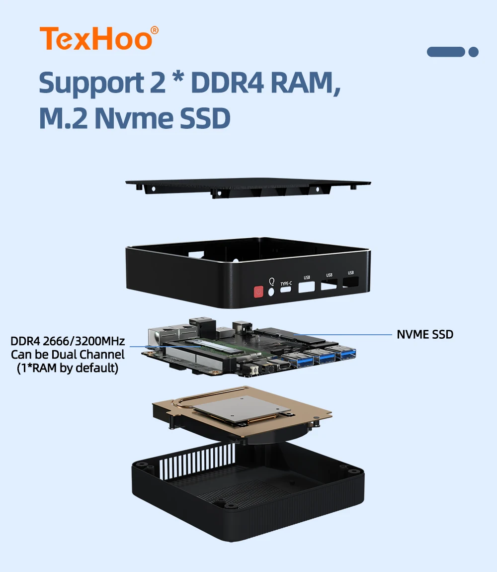 Comprar TexHoo Mini PC Juegos de ordenador AMD Ryzen7 5700U R5 4500U Intel Core i5 1335U CPU Windows 11 Pro NUC Oficina DDR4 DDR5 NVMe WIFI6