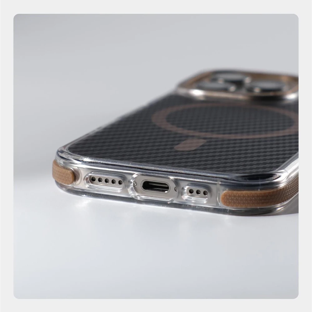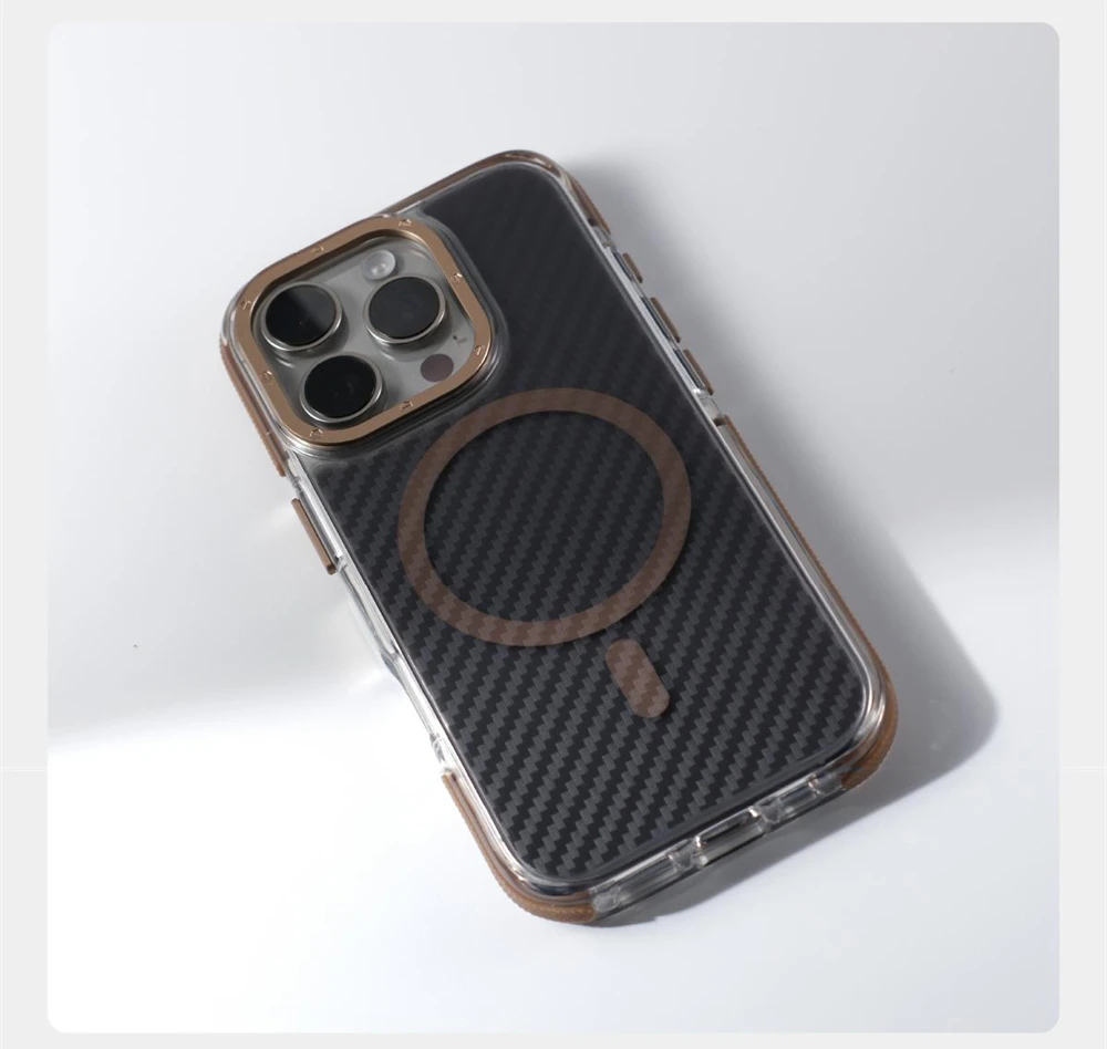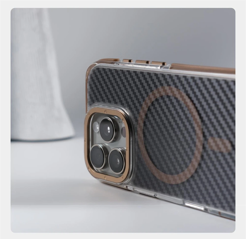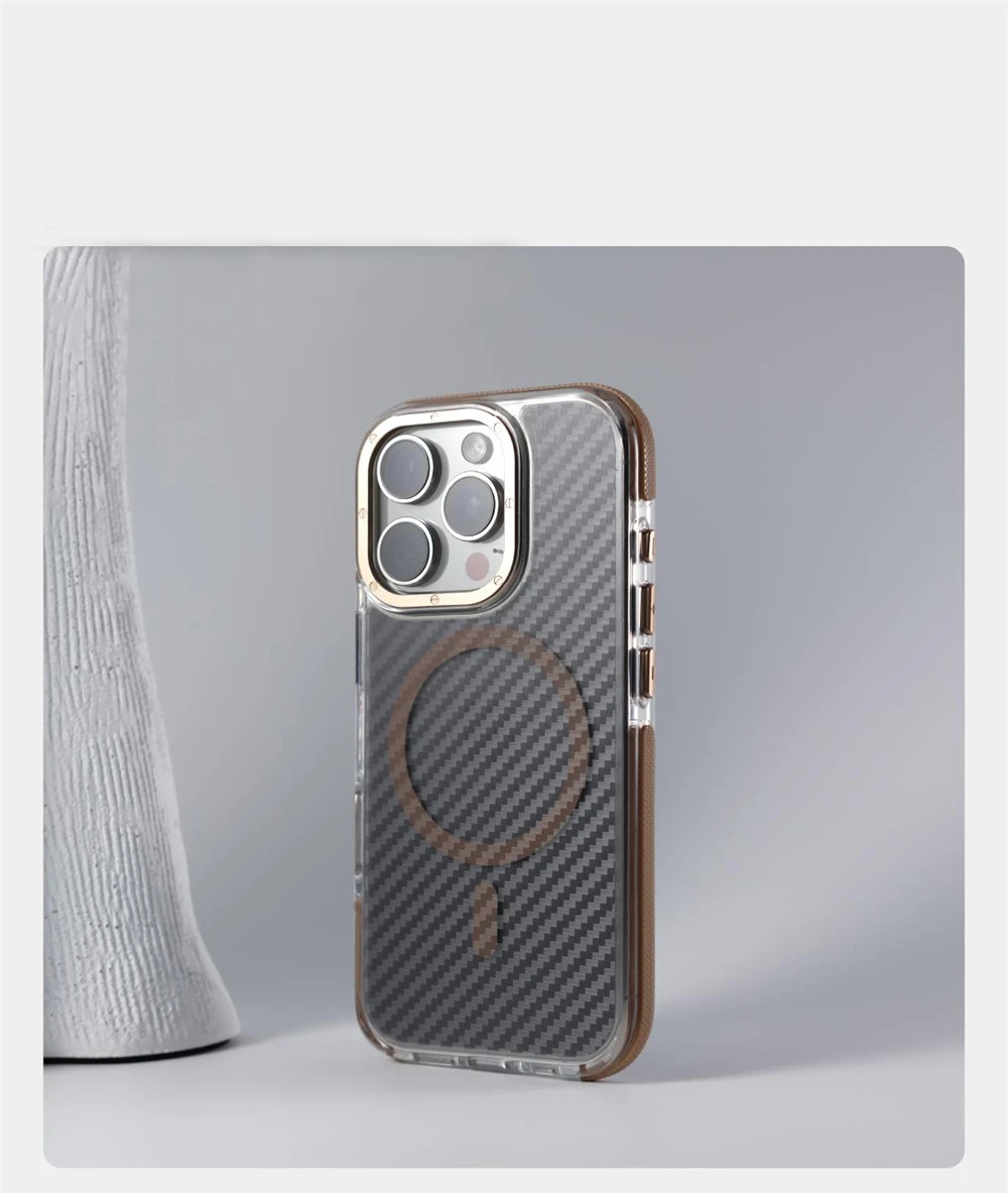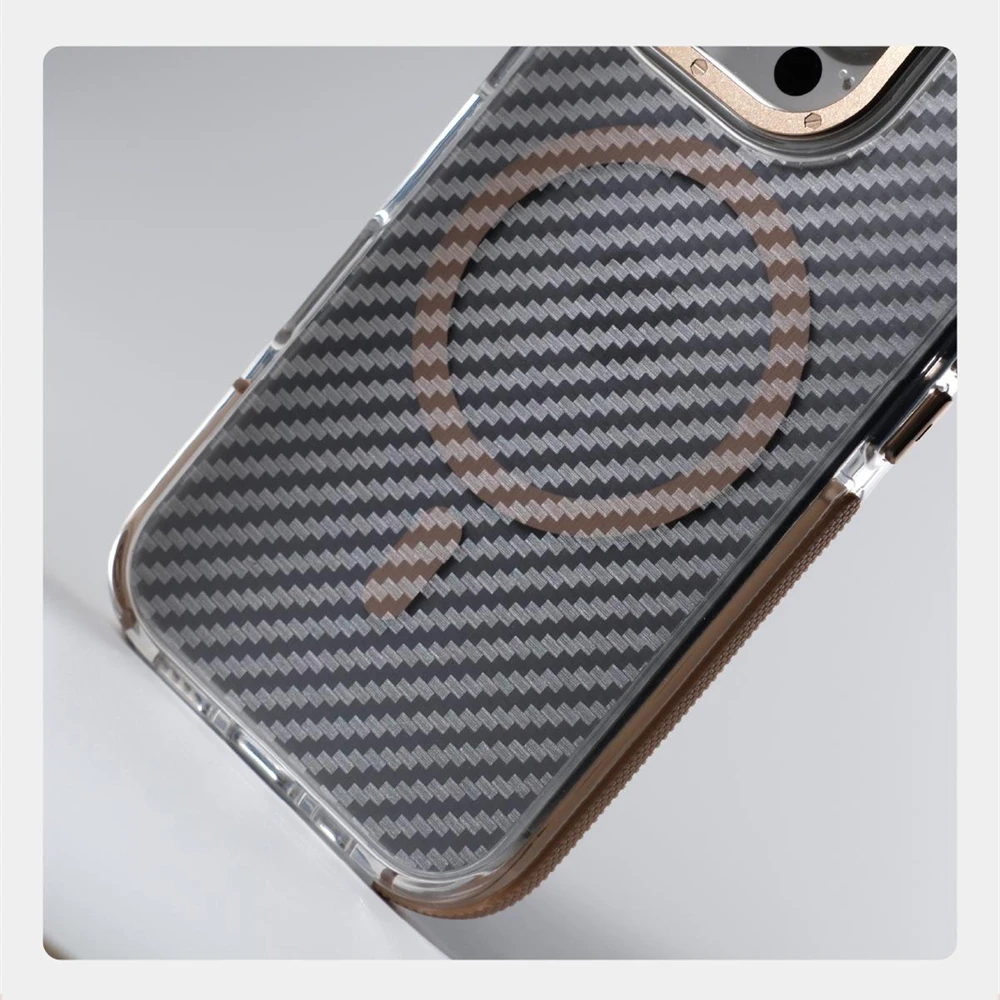 Textura de fibra de carbono de lujo para Magsafe, funda a prueba de golpes para iPhone 17 Pro Max 16 15 14 13 12, cubierta de armadura magnética con lente de aleación de aire