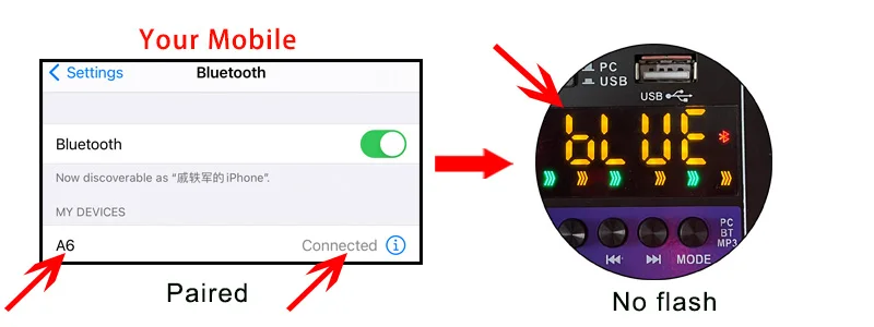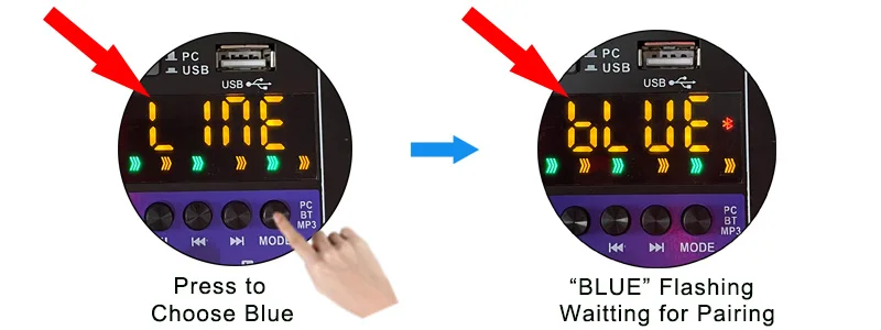 Presione MODE hasta "AZUL", "AZUL" parpadea y está esperando el emparejamiento.