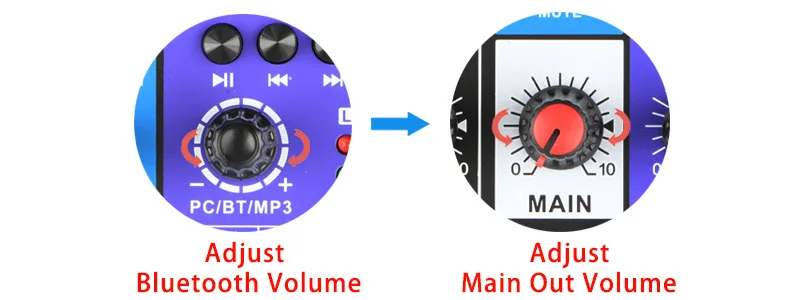 A) Gire la perilla PC/BT/MP3 para aumentar o reducir el volumen del Bluetooth